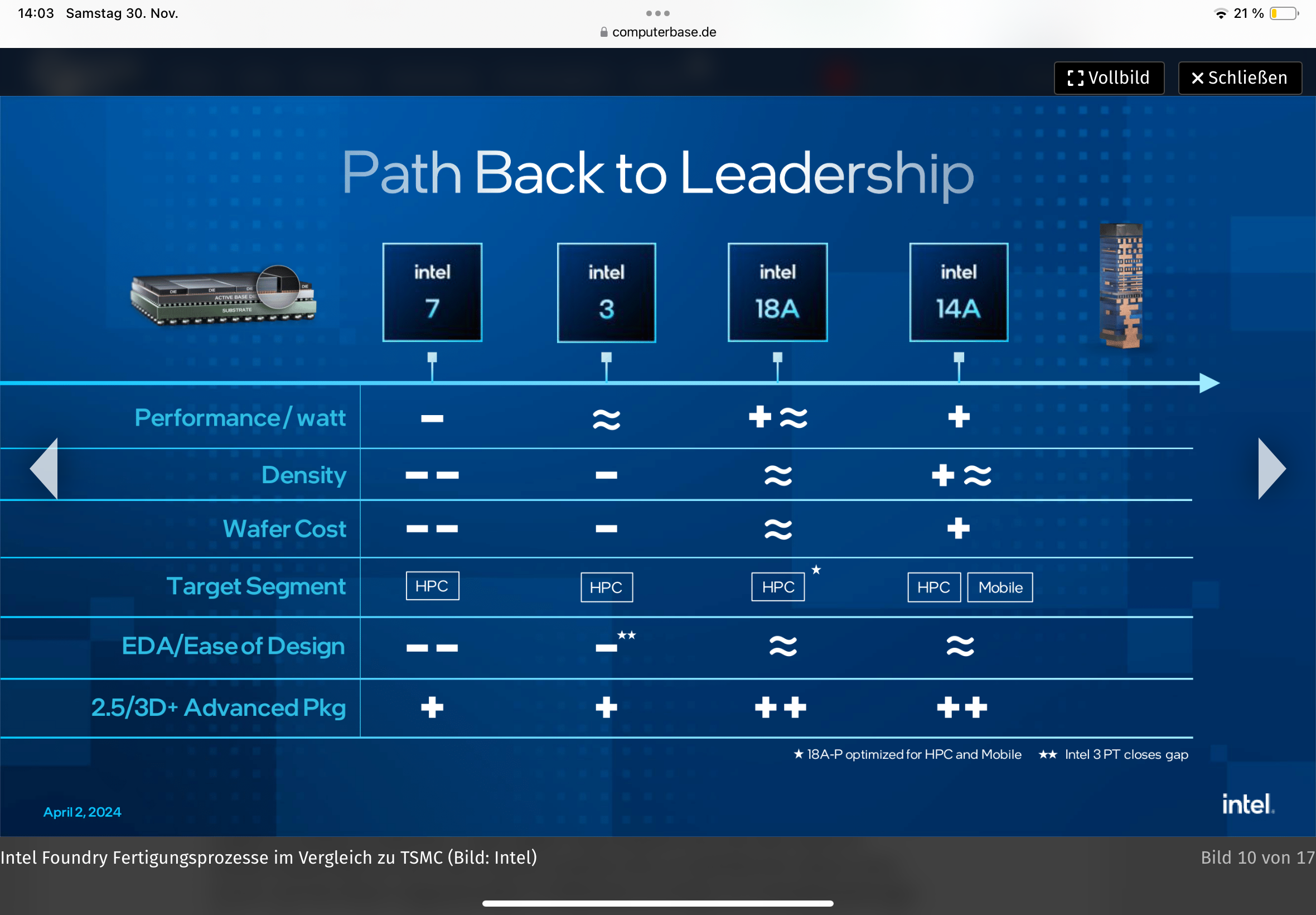 auch finde ich interessant das Intel bereits anfang des Jahres die Kosten genannt hat, mit A18 wollen sie gleich ziehen und ab A14 einen Kostenvorteil bieten wo schon Intel 3 doch teurer war. die Finanzieren TSMC jetzt mit den Ausbau zu beschleunigen und kaufen das Teuer ein, wenn Intel dann aber selbst fertigen könnte braucht TSMC nur die Preis zu drücken, nicht umsonnst steigt die Marge bei TSMC munter weiter wo Intels immer weiter fällt. nächstes Jahr wird allemal spannend, TSMC wird mit 5nm sicher noch ein Paar jahre gutes Geld verdienen denn dagegen hat intel dann nur A18 der sicherlich teurer ist und bei weitem nicht die Kapazitäten liefern kann.