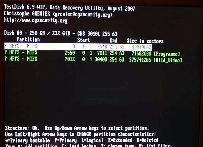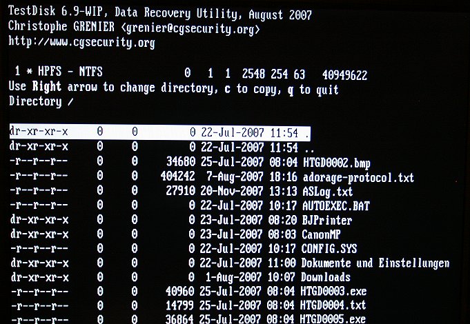 Ich poste mal noch Aufnahmen von Testdisk.