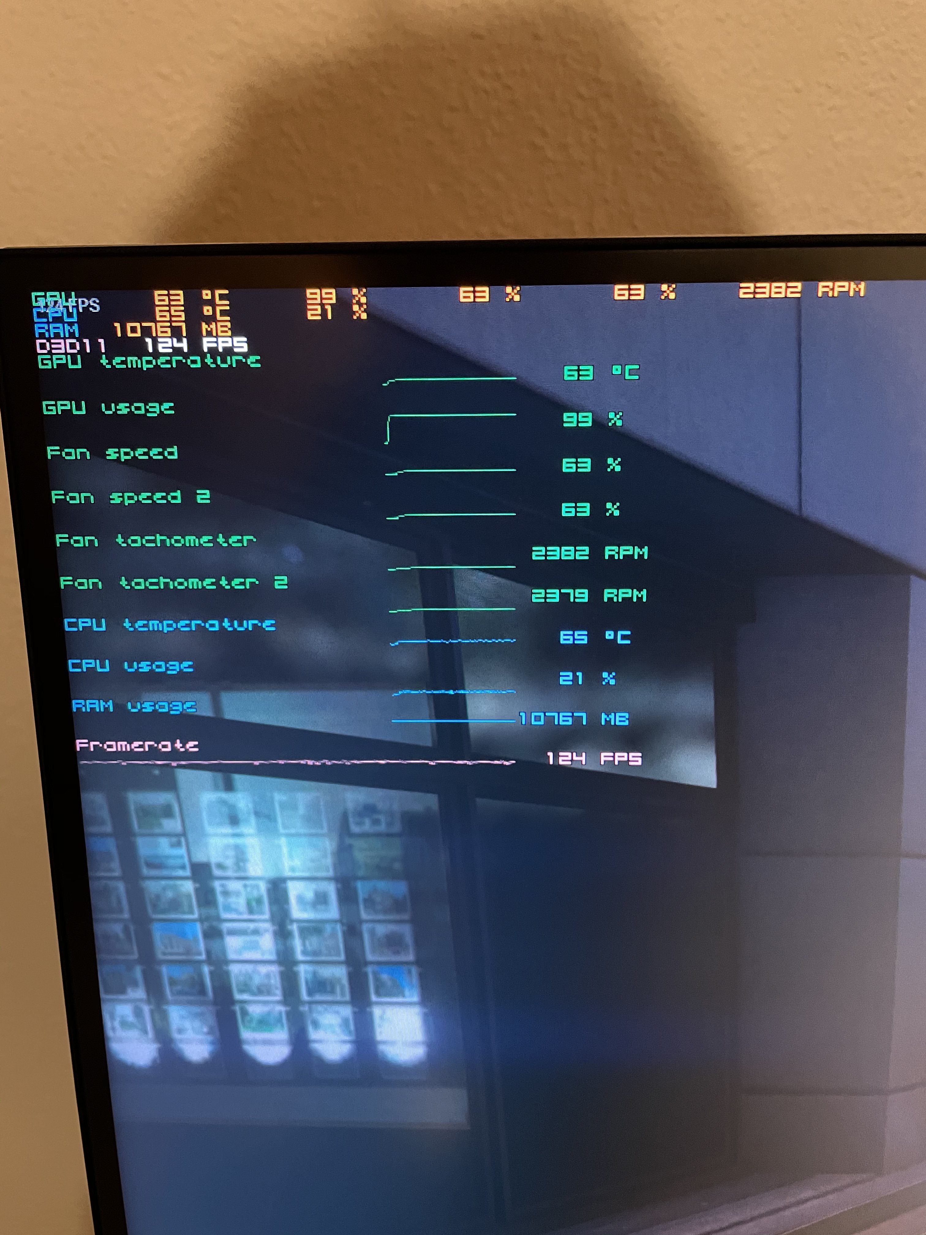 Im Hauptmenü bei GTA komme ich auf 80 fps, was auch nicht ganz richtig/normal sein kann, da ich im Menü gewöhnlich die max fps von 144 oder mehr habe. Ich habe alle Stecker im PC neu eingesteckt, bei der CPU die Wärmeleitpaste ausgetauscht und die Grafikkarte neu eingebaut. Leider ohne Erfolg.