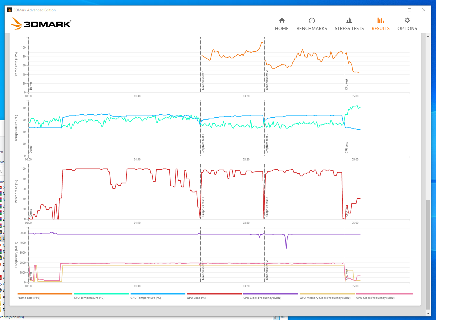Ich habe den 3D Mark ausgeführt und bin beim GPU Test nie über 100 fps gekommen.