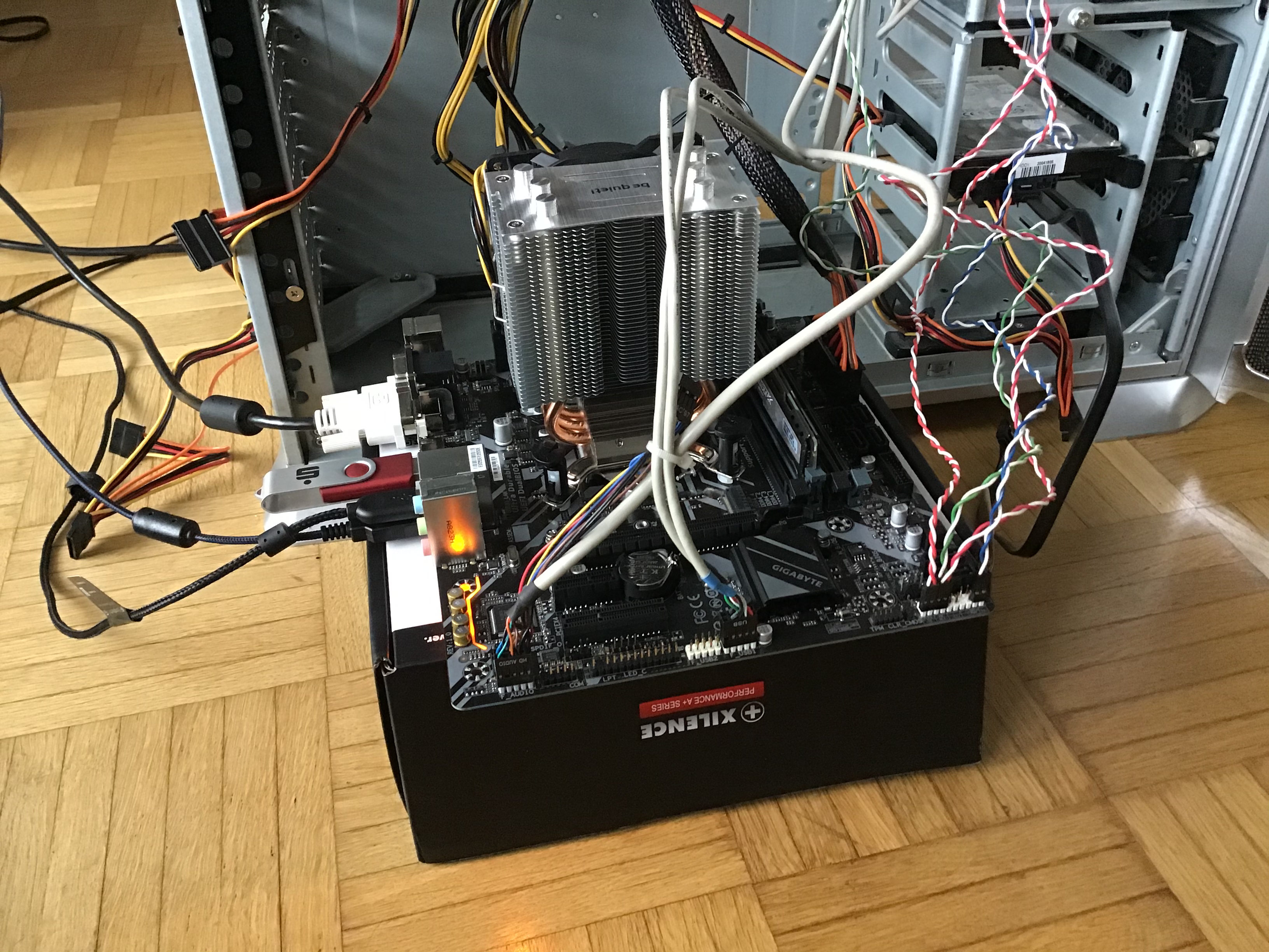 - nur mit dem nötigsten gestartet also nur Board , cd usb oder Festplatte
