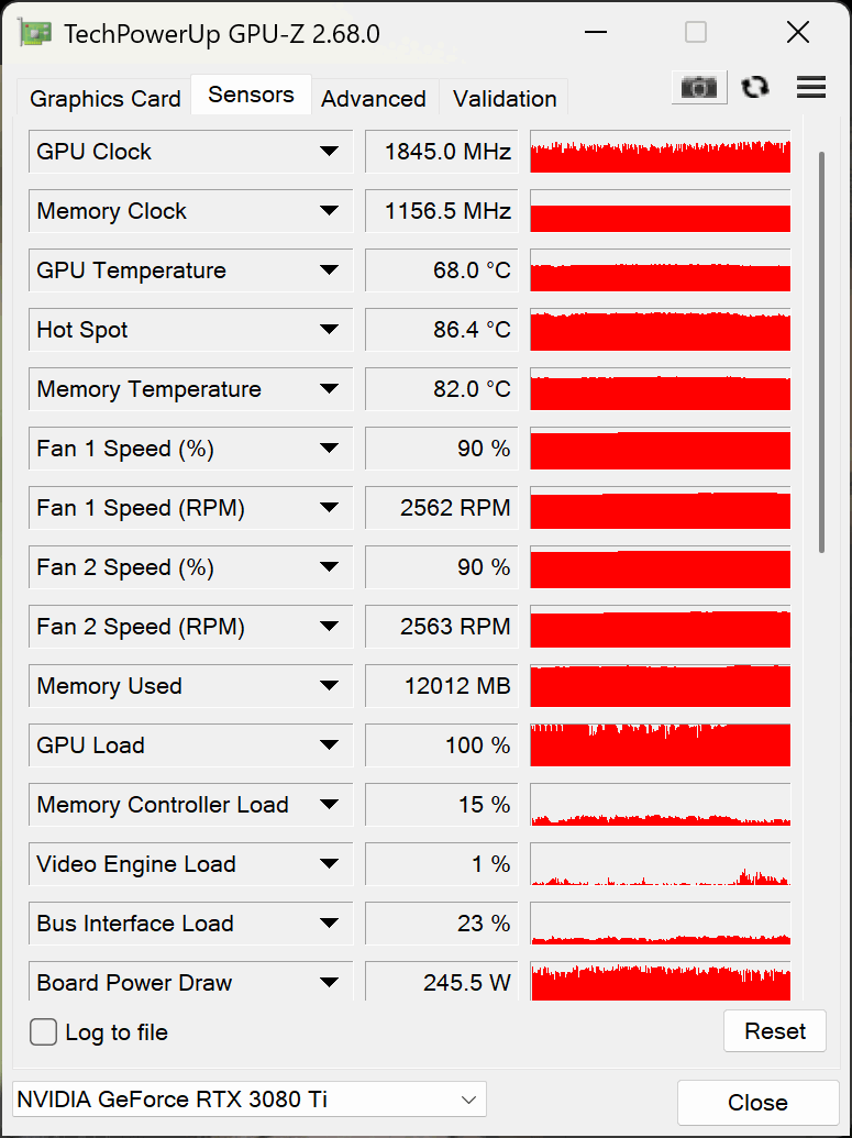 Knapp 10min. Test mit "Cyberpunk 2077" (gpuz8.gif) ....im Vergleich zu "WoW" eher harmlos, also verarbeitet "WoW" das doch recht "heiss", hätt ich nicht gedacht, denn da geht es innert 30sek. los.
