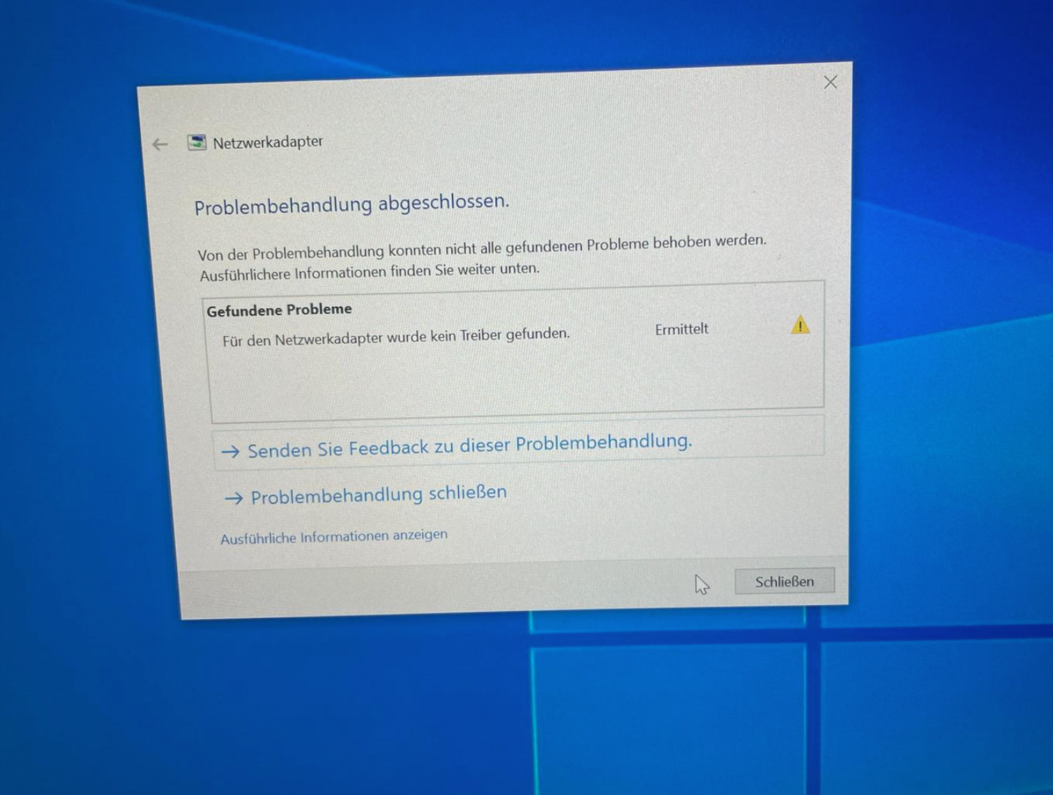 Der Treiber für den Netzwerkadapter fehlt.