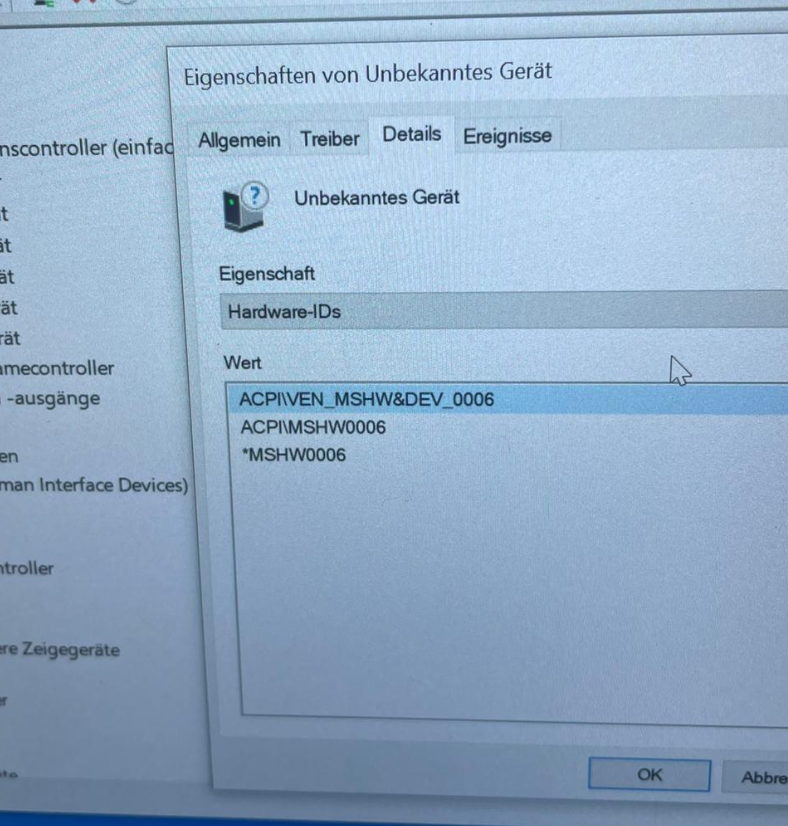 Da klickst du auf Eigenschaften und wählst Details --> Eigenschaft: Hardware-ID aus.