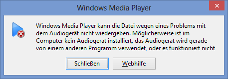 Wenn ich eine Audiodatei oder Videodatei öffnen will zeigt MediaPlayer mir ne Fehlermeldung an, dass die Datei nicht wiedergegeben kann.
