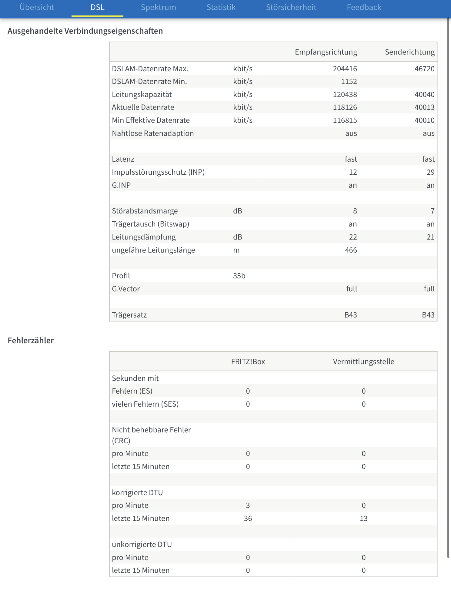 Was mir aufgefallen ist, dass die in der FRITZ!Box ausgegebene Leitungskapazität manchmal schwankt im Bereich von 95.000 bis 185.000 kbits - in der Regel allerdings bei etwa 120.000 kbits verharrt und dort auch den Sync durchführt.