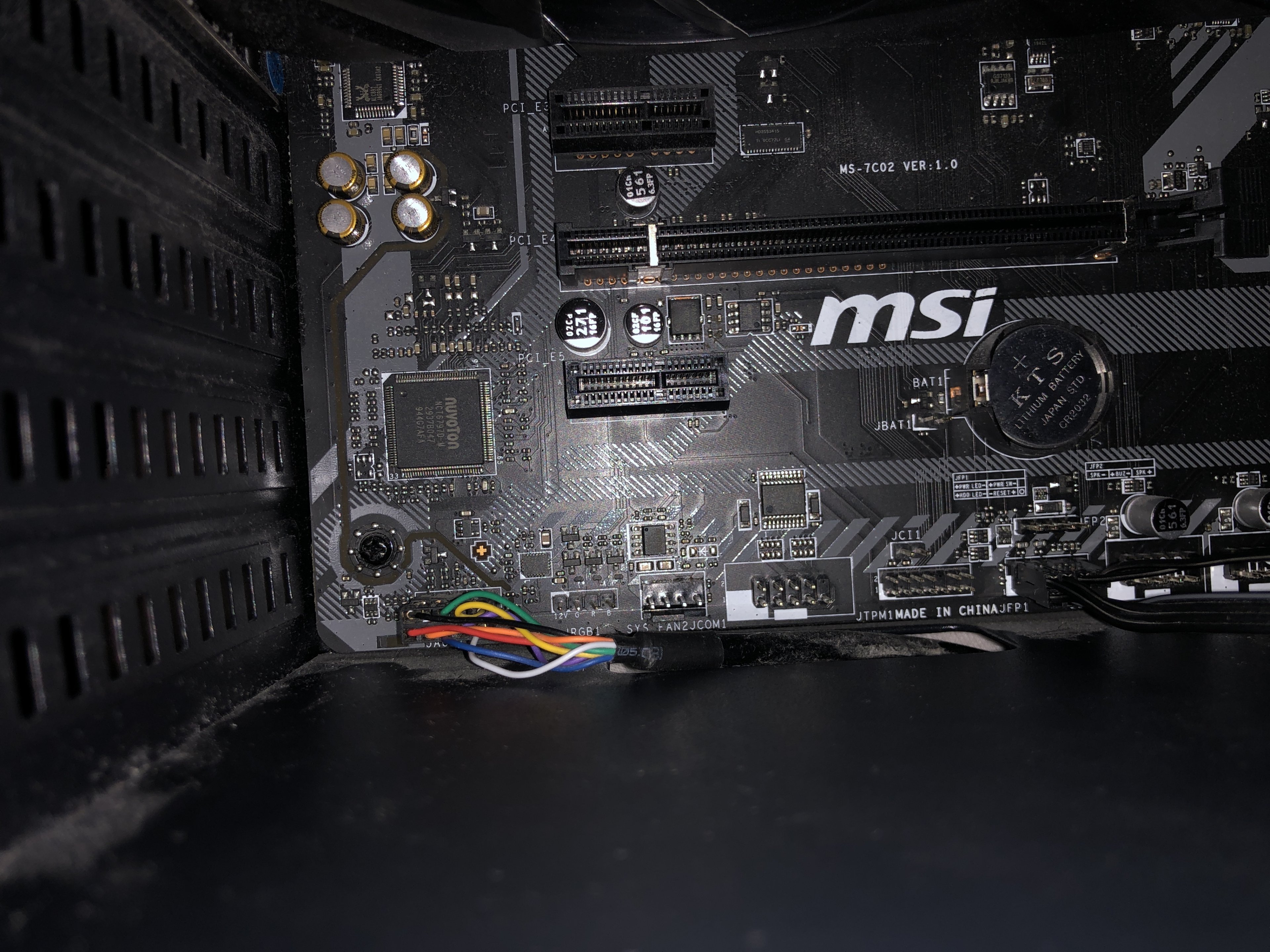 Da man auf den Fotos keinerlei Anschlüsse vom Mainboard bzw. Grafikkarte sehen kann, kann man nur raten.
