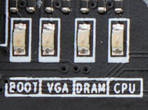 Welche LED leuchtet jetzt genau? Baue deinen Rechner erstmal wieder komplett zusammen, sodaß dein Mainboard auch wieder deine Boot- SSD, den Ram und dein Grafikausgabegerät erkennen kann. Wahrscheinlich bleiben dann die LEDs aus!?