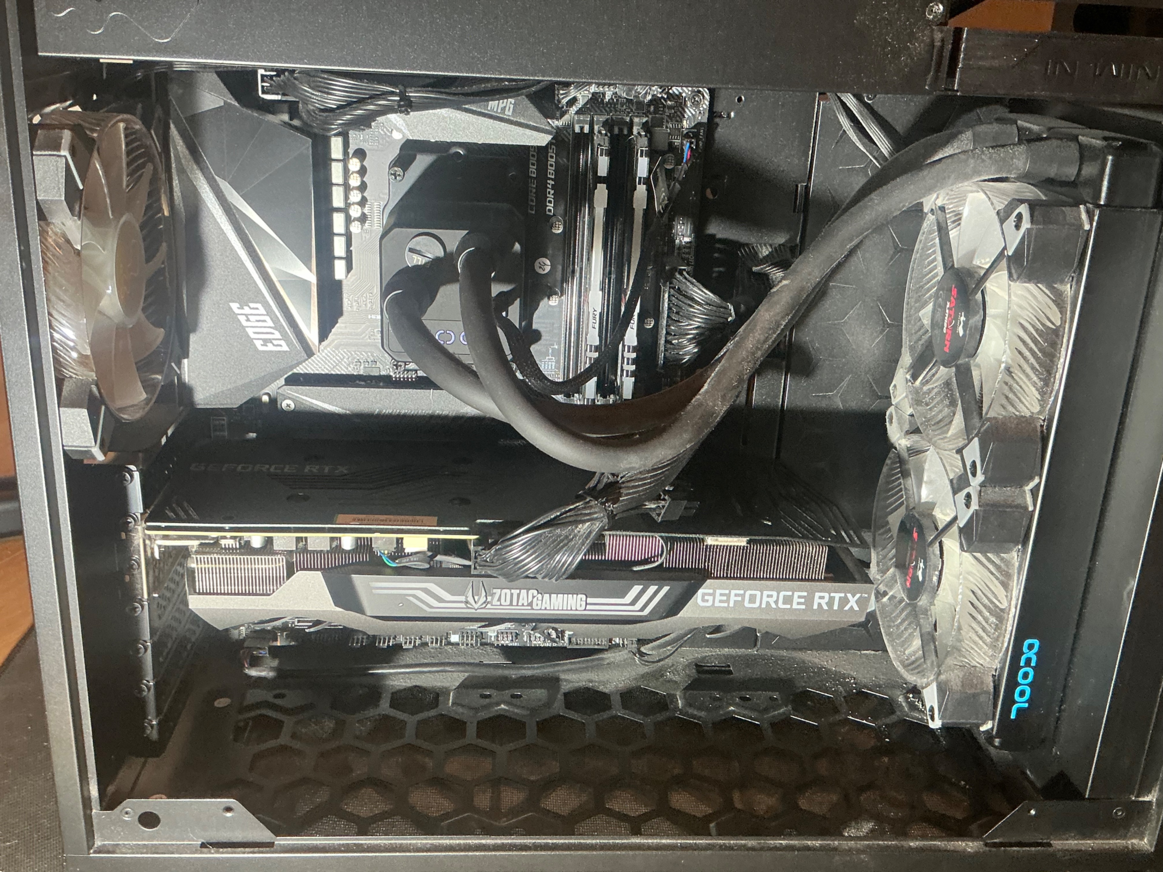 Komponenten: Grafikkarte: 3070ti, CPU: AMD Ryzen 9 5900 X, Mainboard: Socket AM4, Wasserkühlung