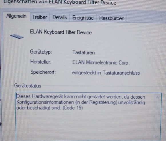 Einer hieß "ELAN Keyboard Filter Device" - nach dem Update funktioniert die Tastatur nicht mehr.