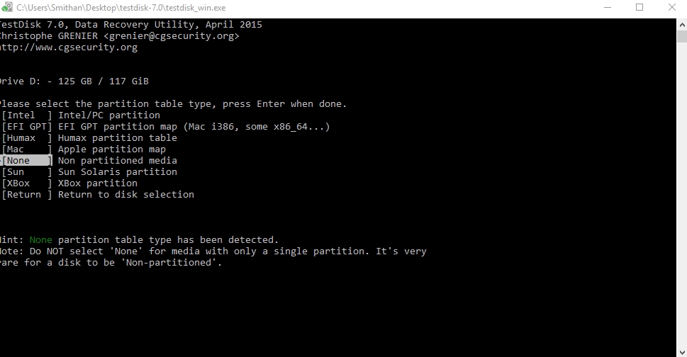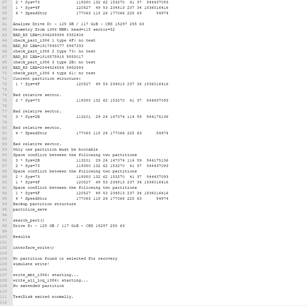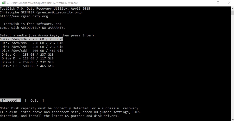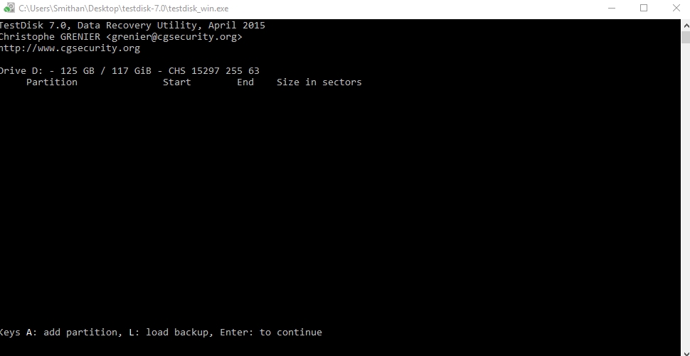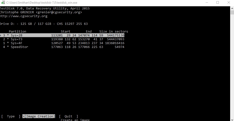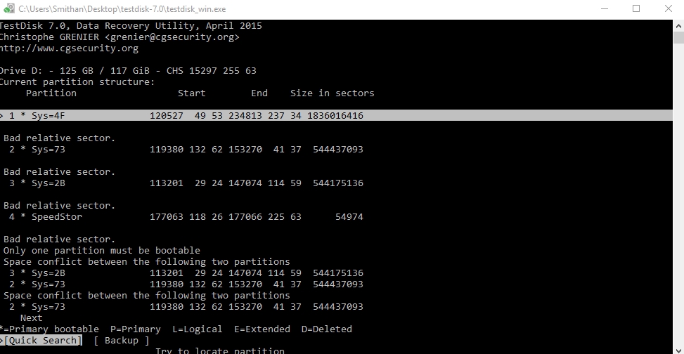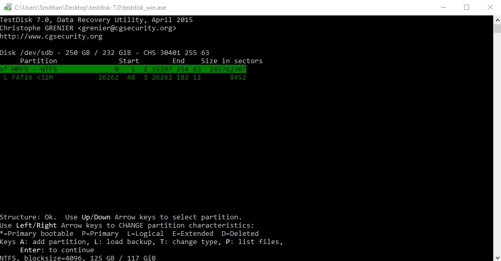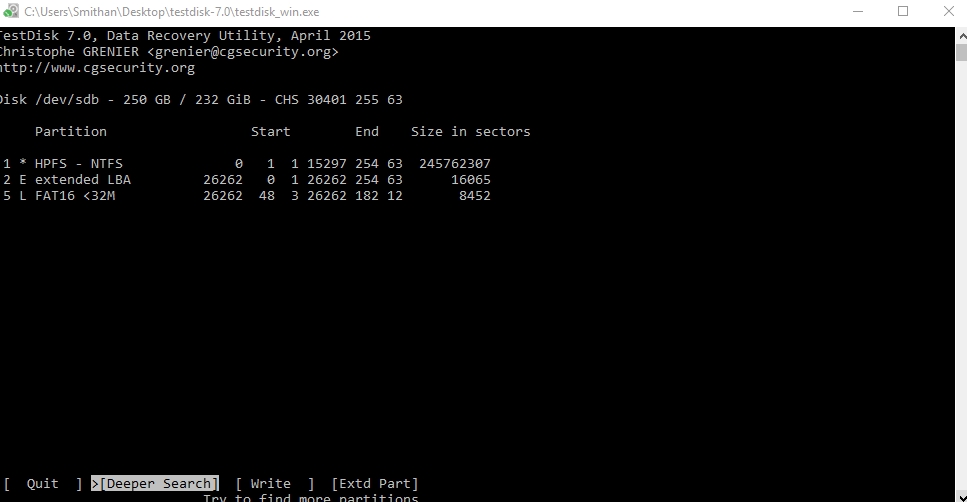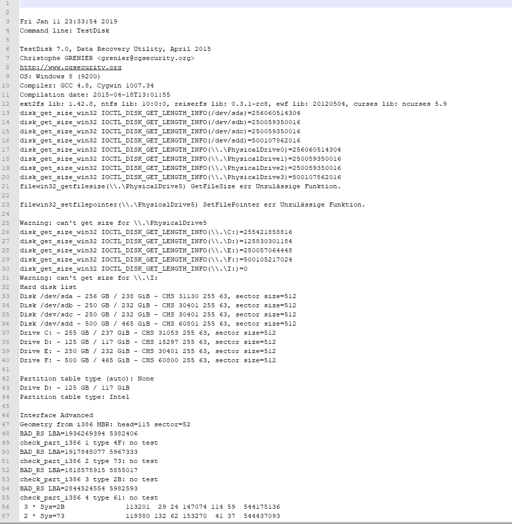 Ich habe dann Testdisk gestartet und folgendes ist zu sehen: