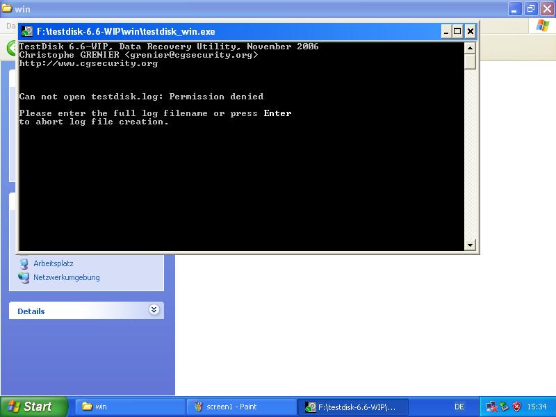 can not open testdisk log:premission denied