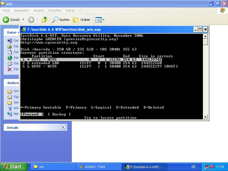 also mit dem makieren der betroffenen partion ist ein problem das ich nicht weiß welche:(