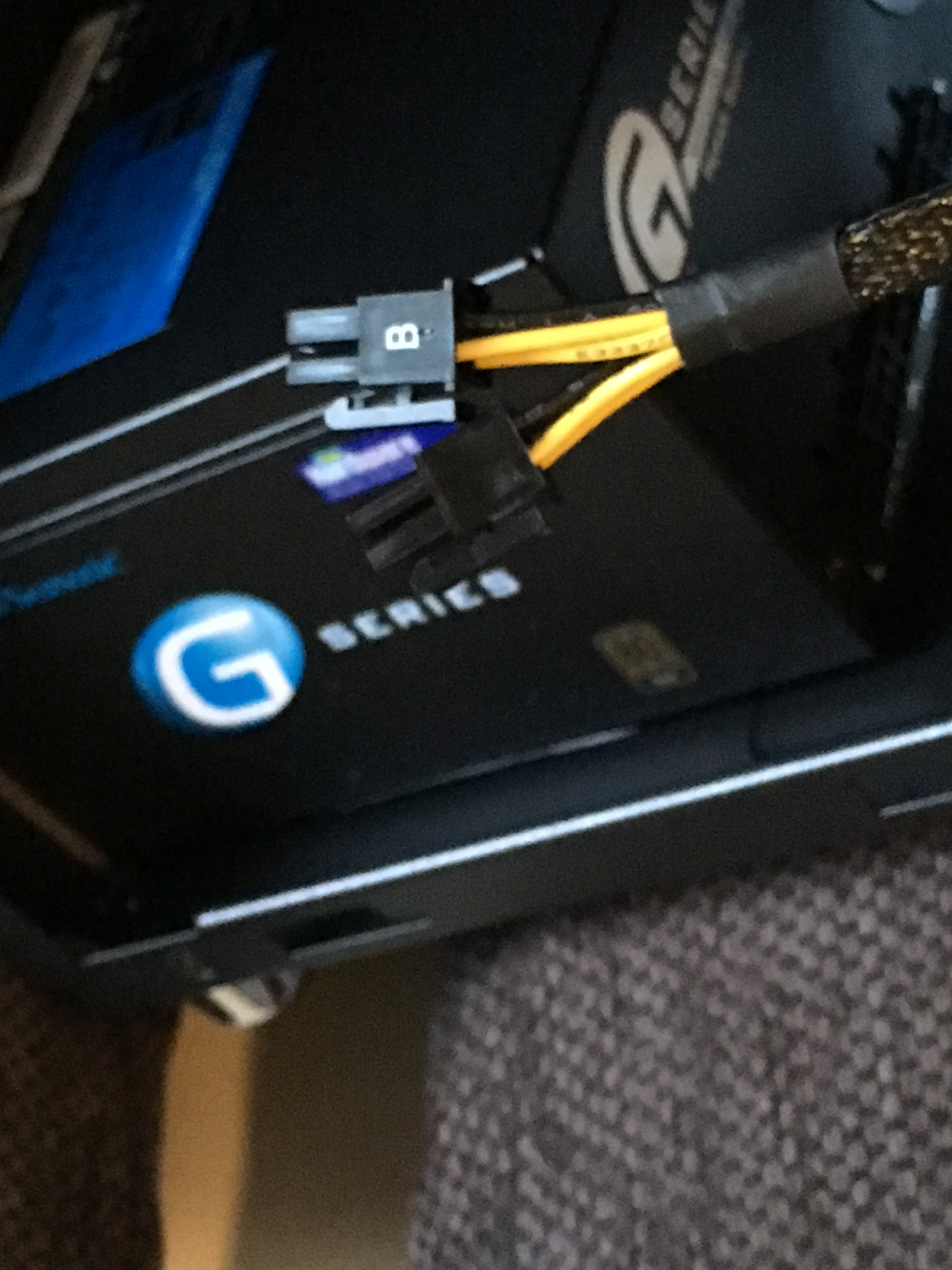 Bild 12: von Bild 3 das gegenstück habe ich dann mit dem Netzteil verbunden und in Periheral + rechts danebenin IDE+SATA gesteckt. 2x 6 polige, da wo ich die Lüfter gesteckt habe von Bild 3.