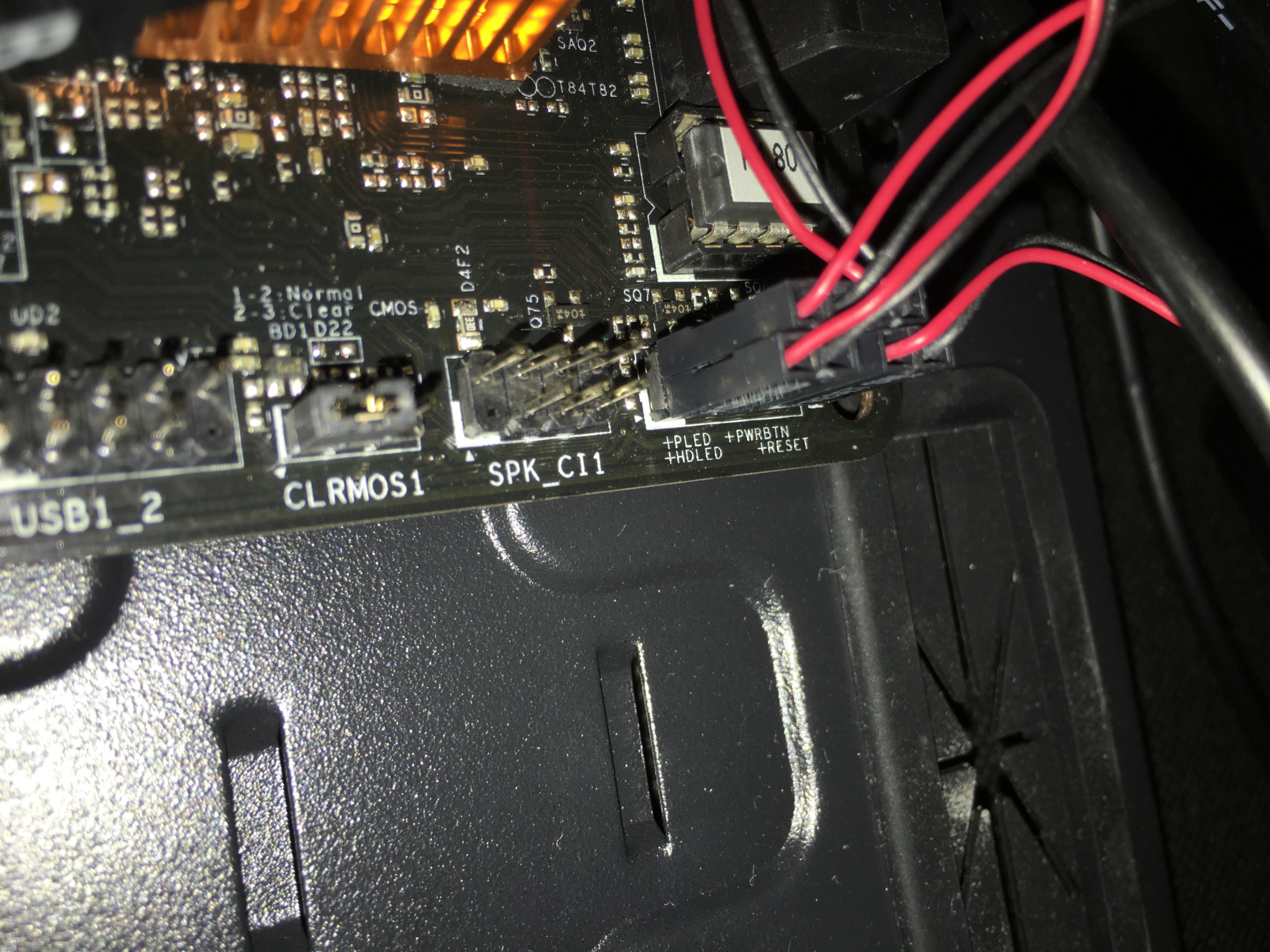 Bild 9: Dort habe ich die Power led, HDD led usw. angeschlossen. Die Stecker sind alle rot+ schwarz. Was dort - und + ist, lässt sich aus dem Handbuch leider nicht rauslesen.