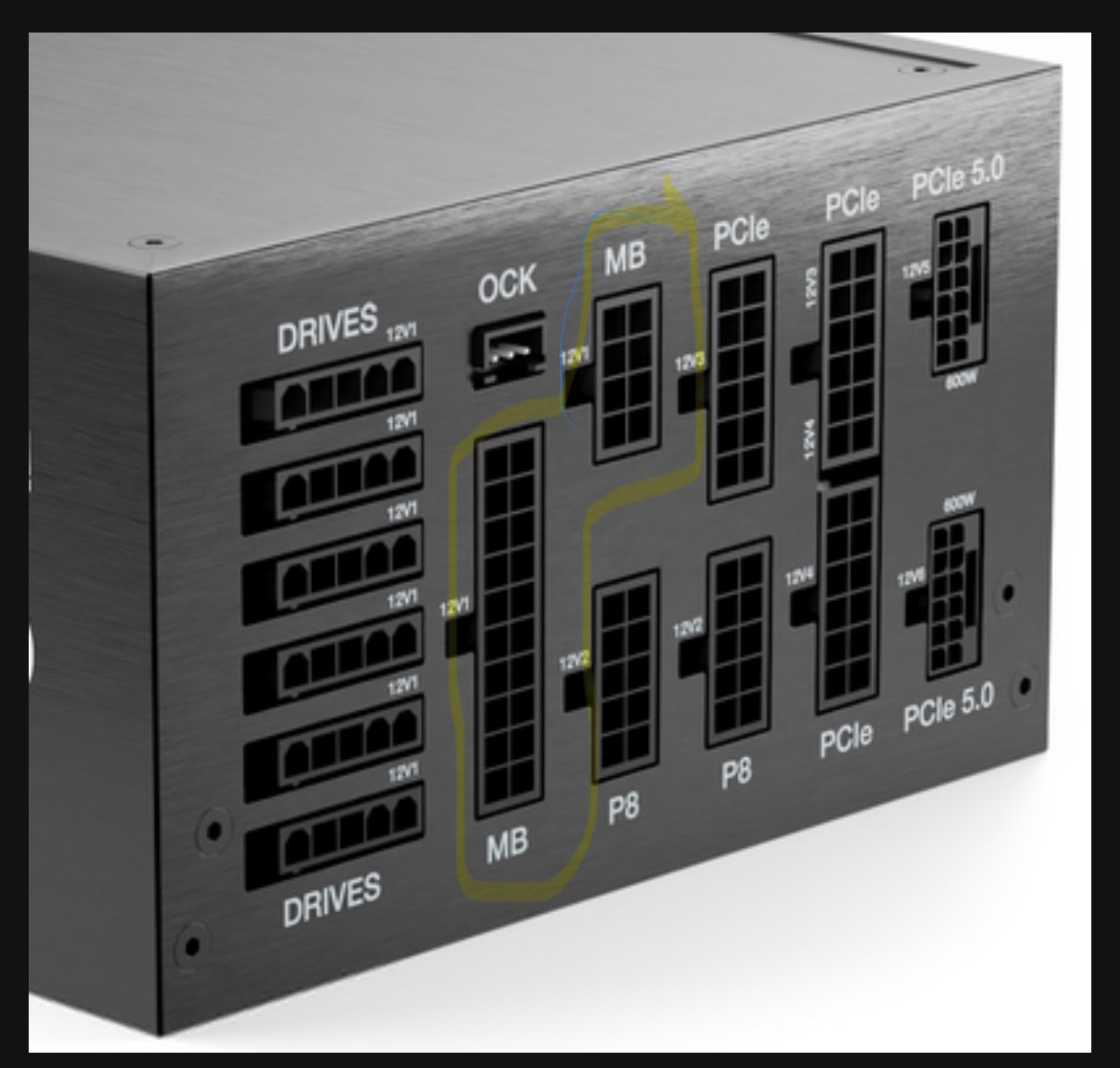 Diese Anschlüsse müssen ZWINGEND angeschlossen werden. An den P8 kommt dann das Kabel für die Stromzufuh der CPU.
