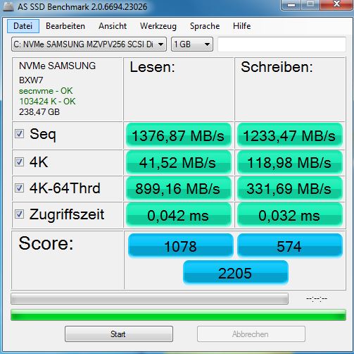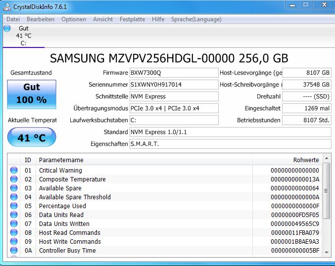 PS: Energieoption auf "Höchstleistung", Temperatur und lese/schreib -geschwindigkeit der SSD Gut!.