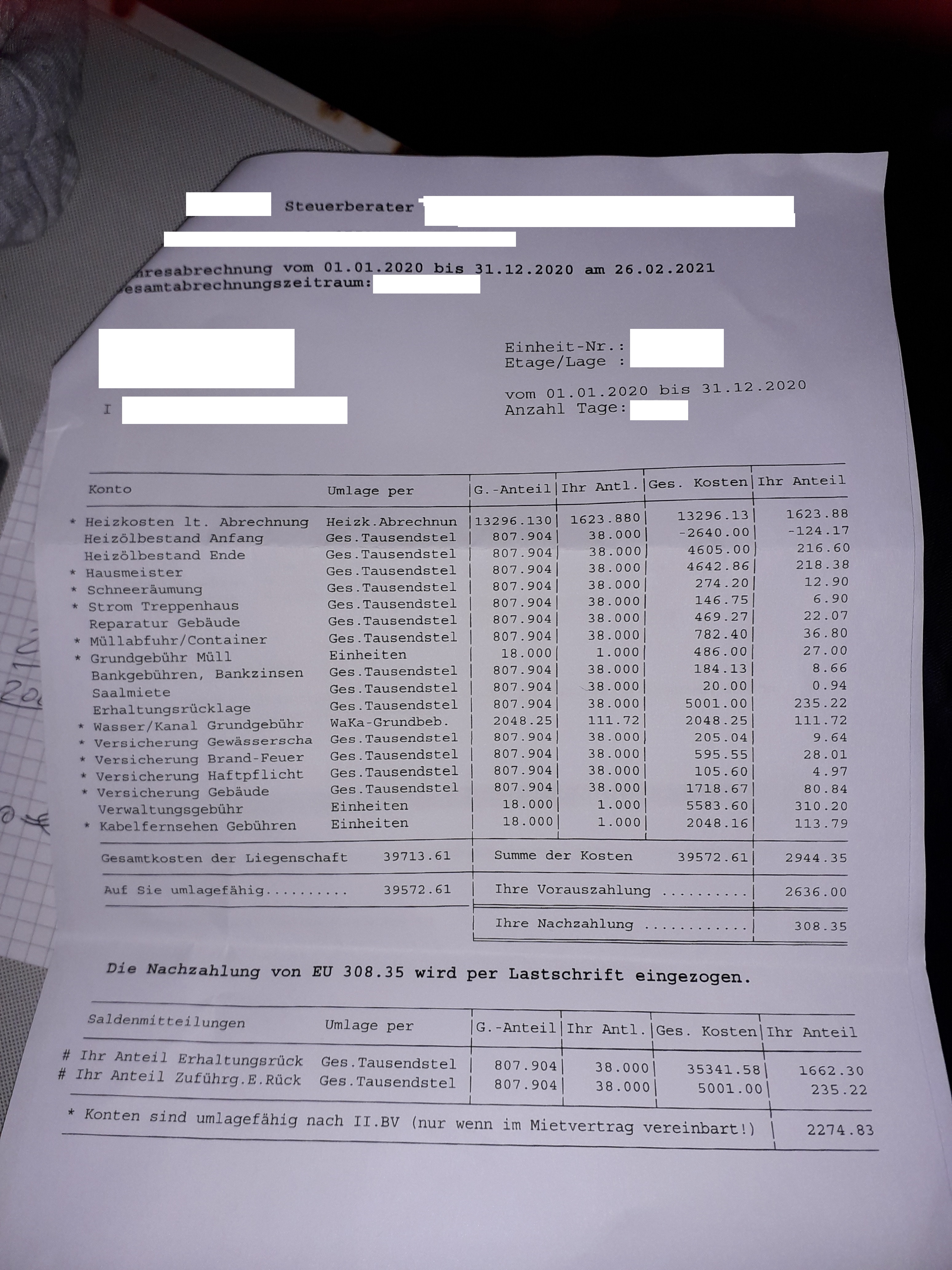 Bezahlt wird erst mal einen Abschlag, welcher auf der Basis vom Mieter gerade mal akzeptabel.