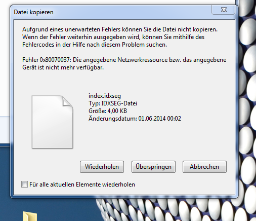 Die Platte ist defekt und muß auf Garantie ausgetauscht werden.