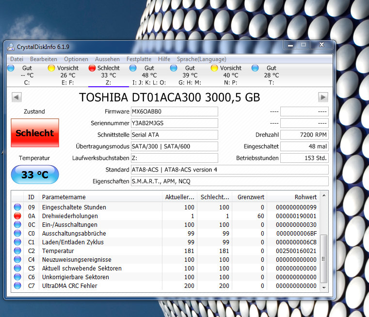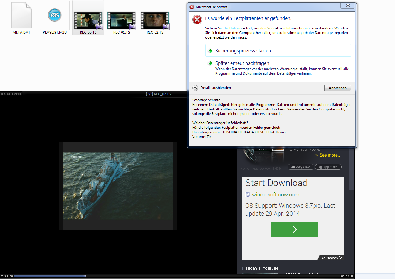 Nagelneue TOSHIBAPLATTE 3TB Bereits FEHLERMELDUNG