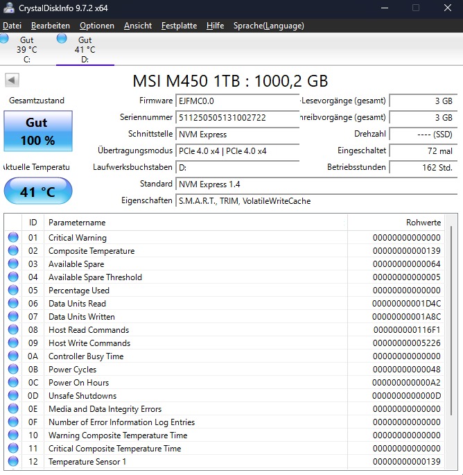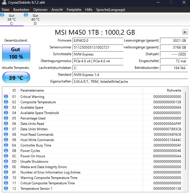 - HDD / SSD: 2x 1tb msi spatial m450 Nvme m2 2280 pcie 4.0 x4