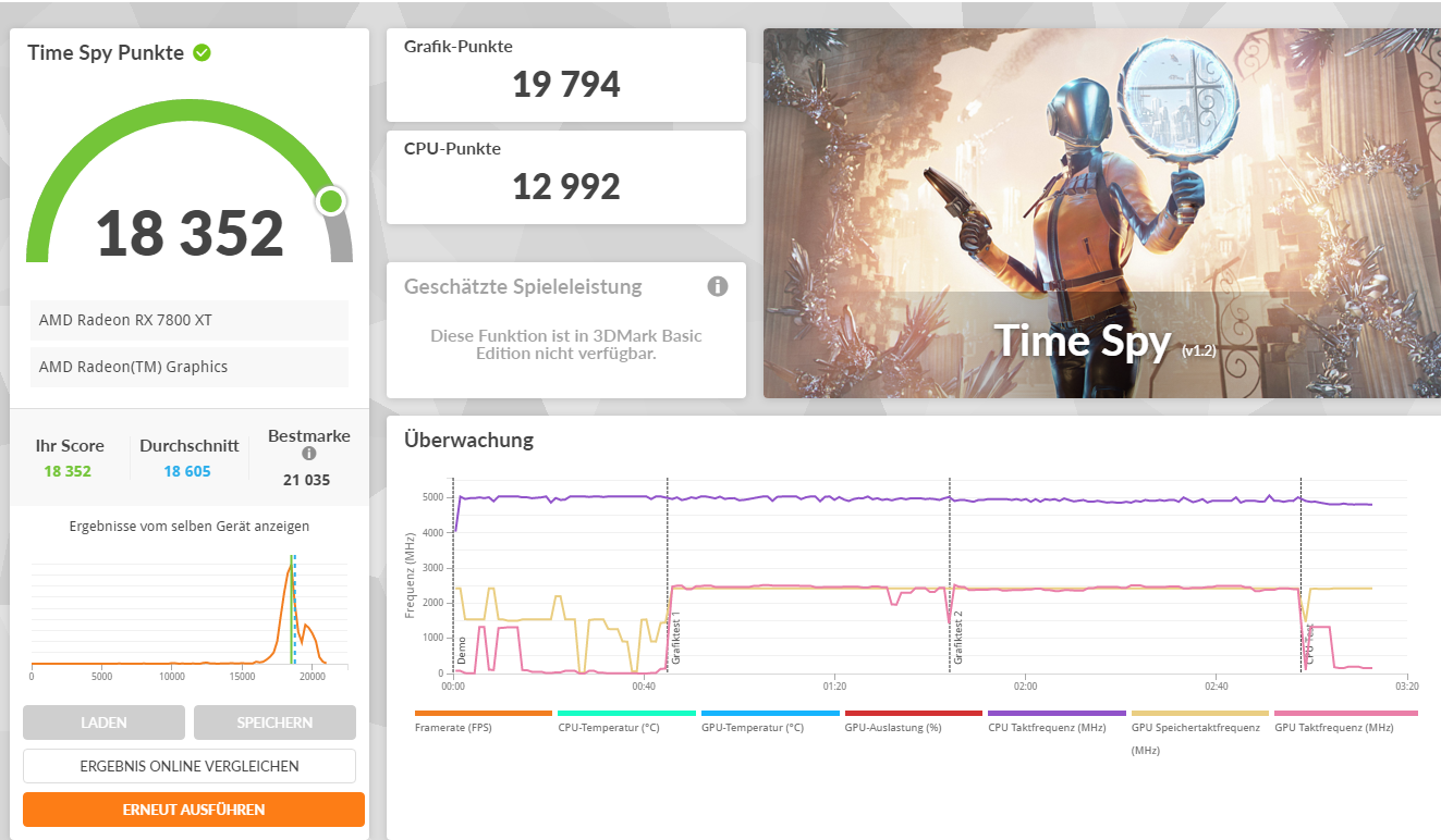 Hier noch die Ergebnisse von Ceinebench (CPU) und 3DMark. Temperatur war durchgehend zwischen 40 und 77 Grad. Beim Crash gerade laut Log 68 Grad