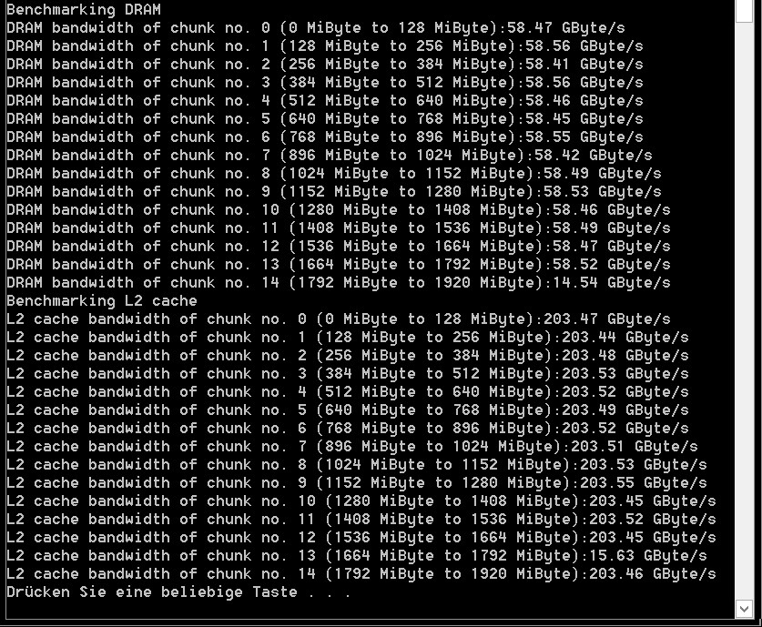DRAM bandwidth of chunk no. 7 (896 MiByte to 1024 MiByte):150.45 GByte/s