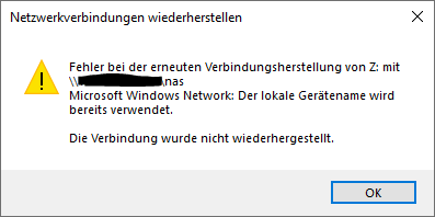 Neueinbinden des Netzlaufwerks hat übrigens nicht geholfen.