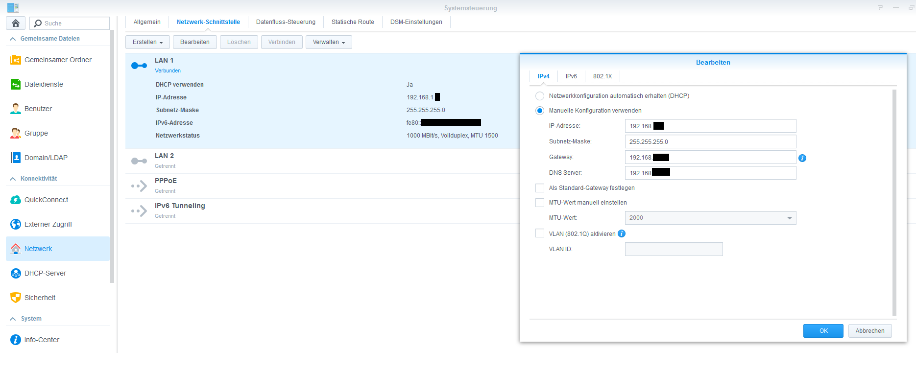 Ich setze eine Fixe IP und irgendwann zb. jetzt nach einem Neustart vom Nas (manuell mit Button) kann ich nicht mehr drauf zugreifen.