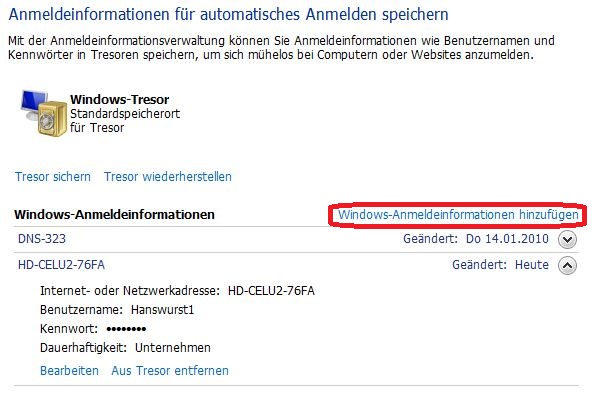 Beim Booten kommt die Meldung: es konnten nicht alle Netzwerklaufwerke eingerichtet werden (oder so ähnlich). Im Dateiexplorer ist die Festplatte durchgestrichen. wenn ich draufklicke erscheint : Windows Sicherheit- Netzwerkkennwort eingeben. Wenn ich dann das Netzwerkkennwort eingebe bekomme ich Zugriff. Das muss ich aber bei jedem Neubooten des PCS machen, was auf Dauer nervt.
