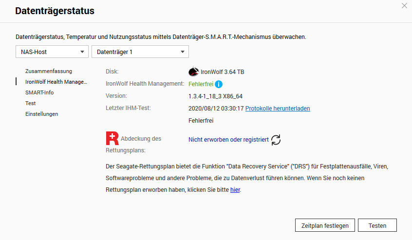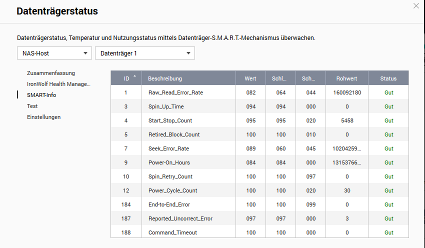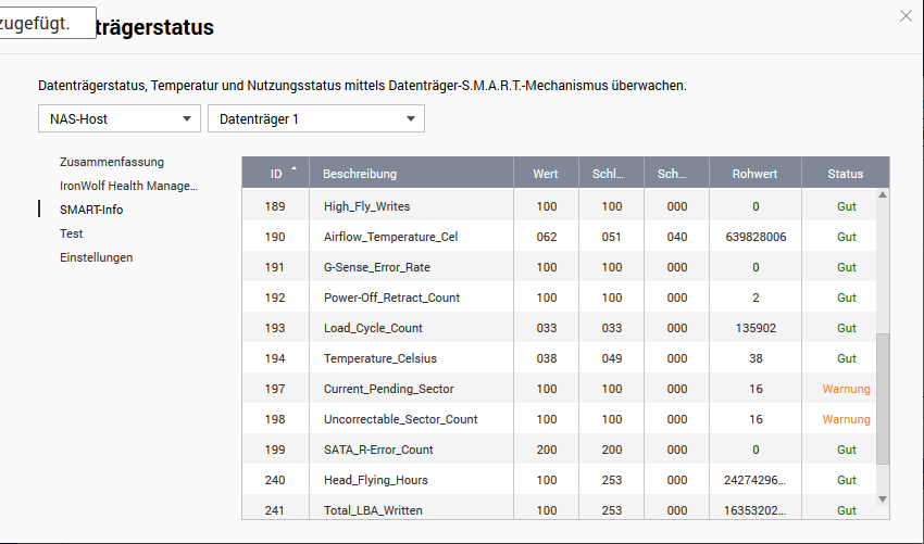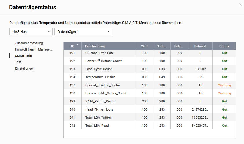 in meiner NAS habe ich eine Warnung bezüglich meiner HDD Seagate Iron Wolf 4TB bekommen. (Backup ist vorhanden)