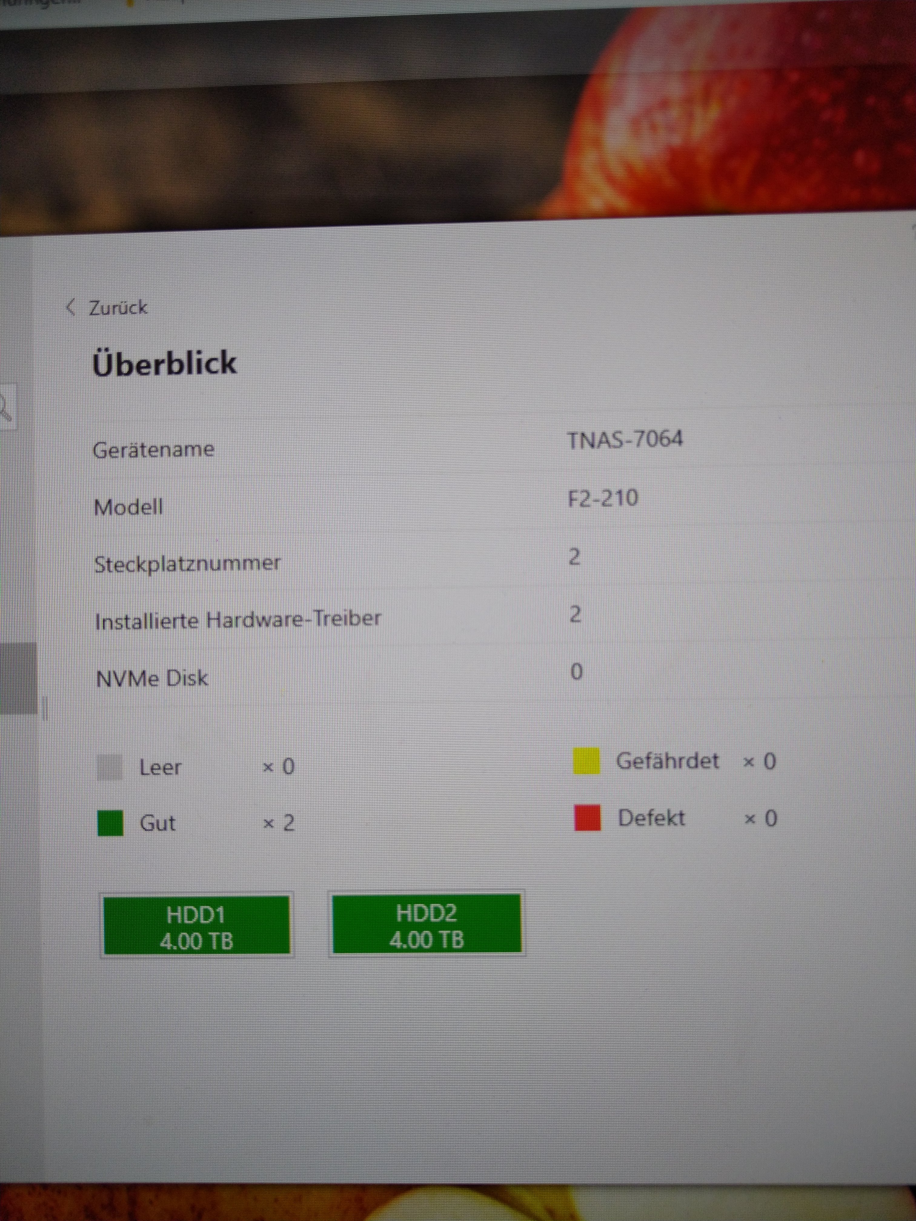 Beim Terramaster habe ich 2 Nas Festplatten verbaut und die Daten mit RAID 1 angelegt.