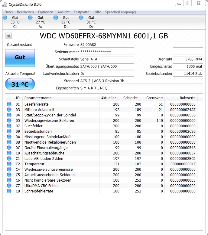 Gehäuse Fractal Design Define R6. Die S.M.A.R.T Werte zeigen bei meine BarraCuda nur 28 Grad an. Musste jetzt lesen, dass höhere Temperaturen für HDDs besser sind. Sollte ich also die neue HDD (egal welche es nun wird) direkt darüber oder darunter einbauen (keinen Platz lassen), damit die Temperaturen steigen!?