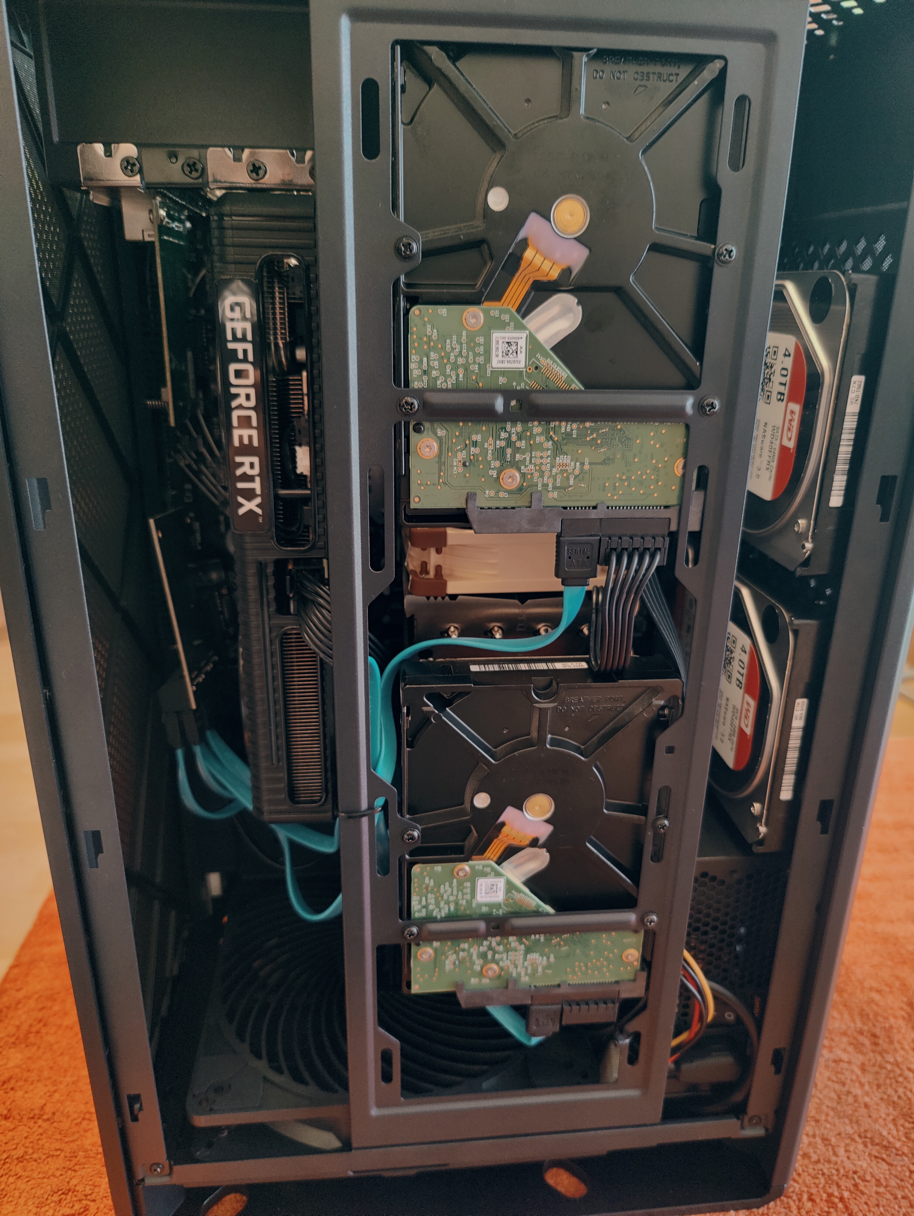 Hinter den Asmedia Controller könnte man jetzt noch PMs werfen. Dann würde sich die Bandbreite entsprechend aufteilen. Aber selbst das sollte kein Problem für Raids sein. Die Adressierung der Laufwerke bleibt eindeutig. Das wird dann aber alles arg speziell und ich würde eher zu Objektstorage auf einzelnen Laufwerken als Raid tendieren. Aber das ist ein anderes Kapitel.