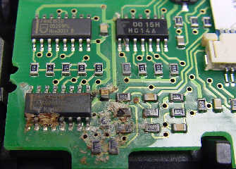 Das sind aber Bilder von "abgesoffenen" Platinen und die Rede war von Korrosion durch Luft und nicht durch Hochwasser. Aber auch bei Hochwasser korrodiert das Gold nicht, sondern der Rest drumherum (wie auf dem erstem Bild zu sehen ist, das zweite Bild ist am Thema vorbei, da keine Goldflächen zu sehen).