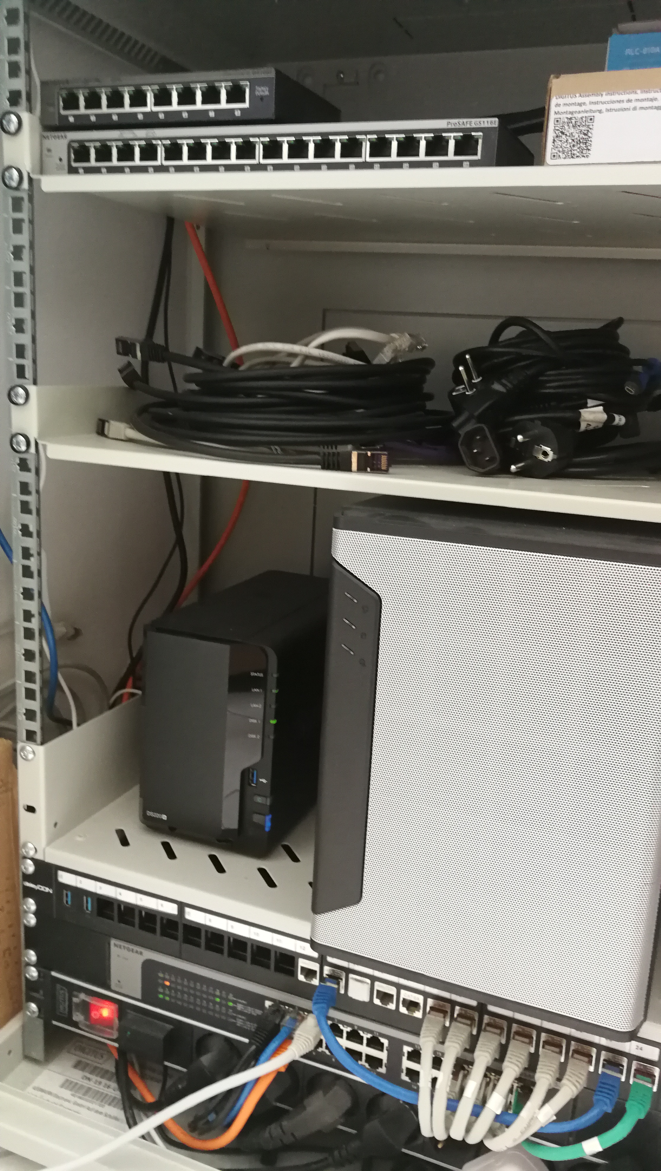 Vorhanden ist ein 19" Schrank mit Switch am Heim LAN.
