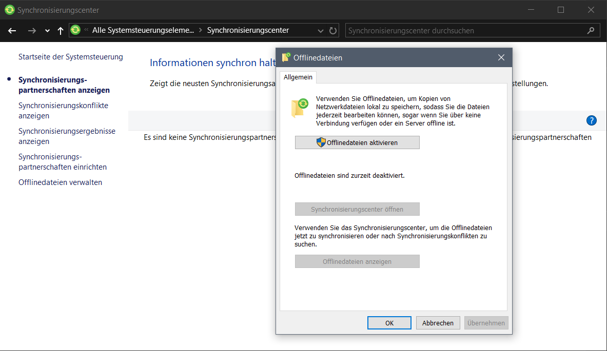 8. Offline-Dateien deaktivieren -- Konnte ich nicht finden