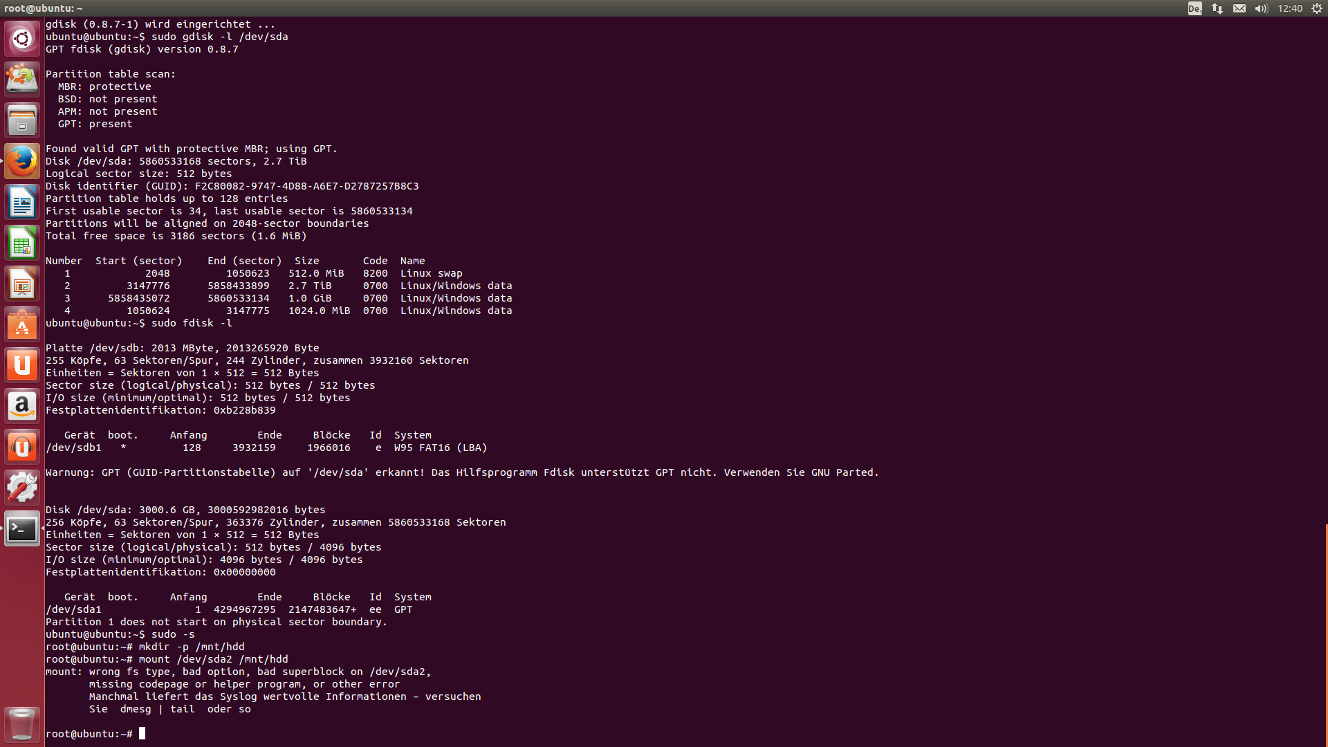 gdisk hat folgenden Fehler ausgespuckt: