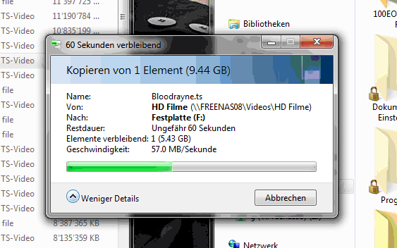Sehr schnelle Verbindung über GLAN. 25-55MB/s