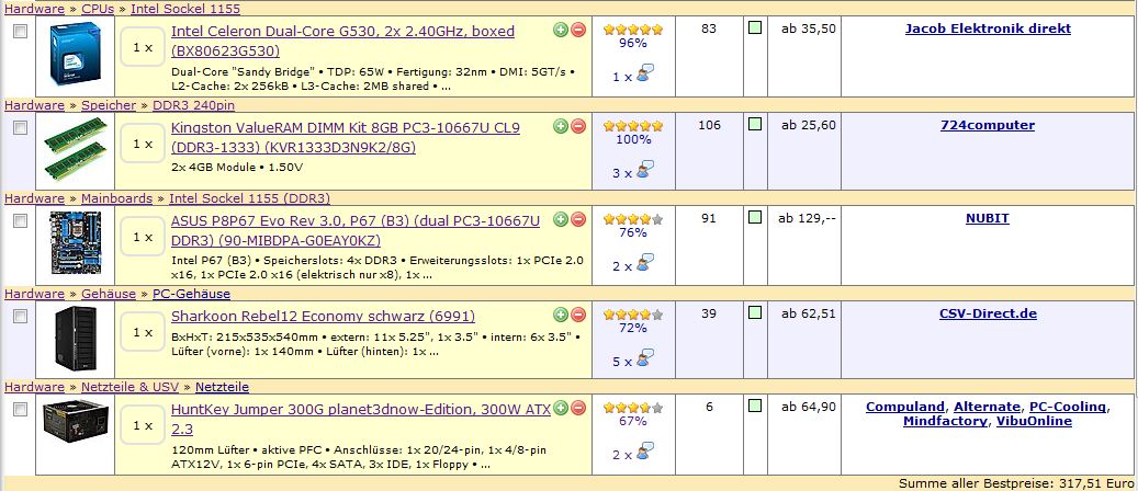 Einige Teile sind doppelt da ich verschiedenes transferiere... es geht primär um lautstärke, das mainboard und die cpu
