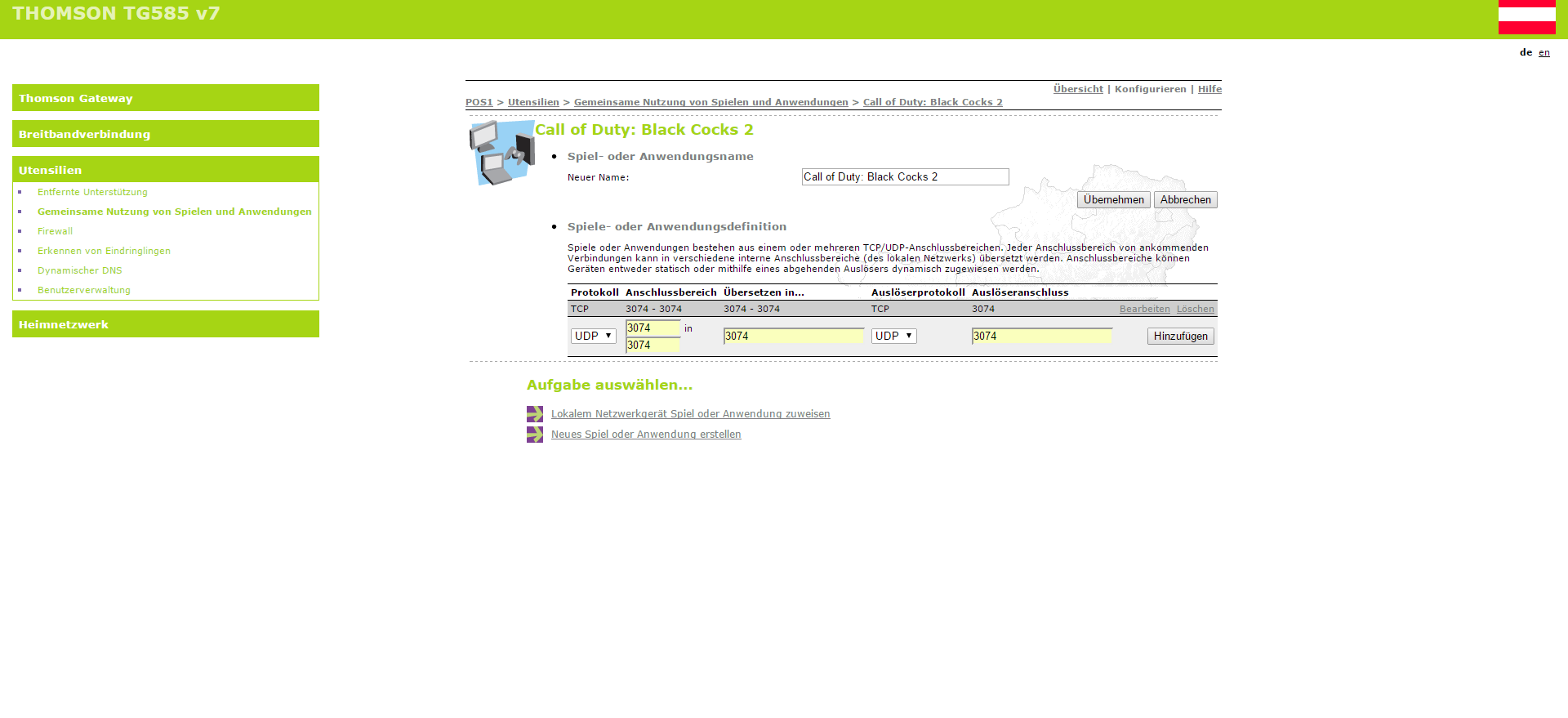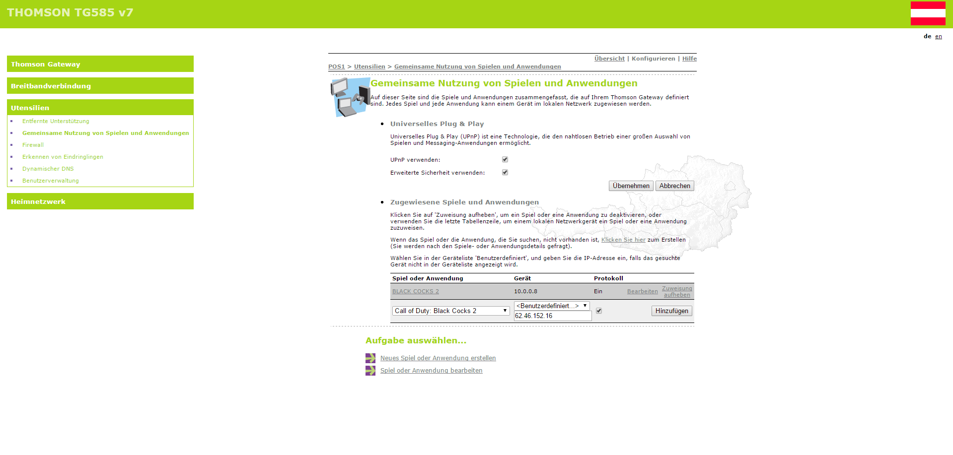 Um auch bei CoD einen offenen NAT Typ zu haben muss folgendes eingeben werden: