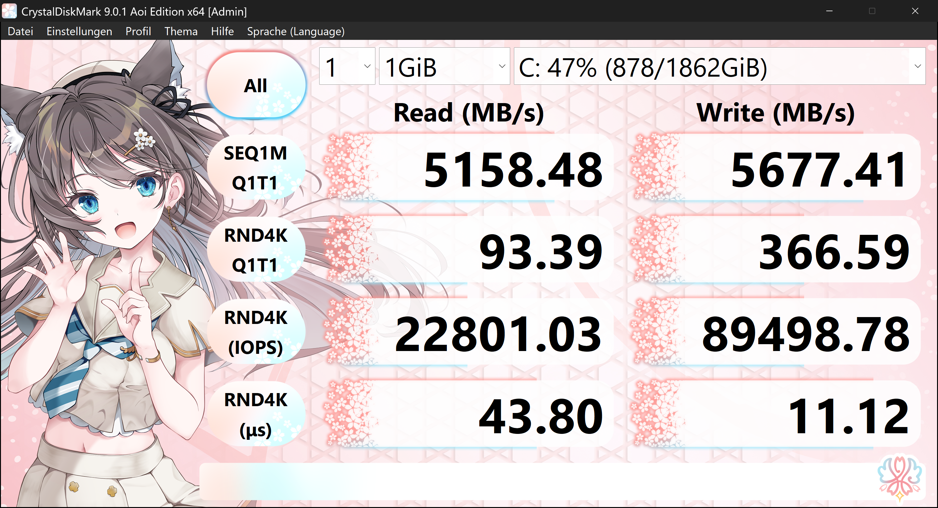 WRITE (Schreiben)SEQ 1MiB (Q8T1)6.680,666.683,78+3,12+0,05%