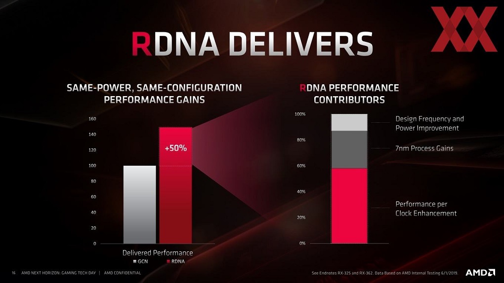 Beides zusammen hatte RDNA1 gezeigt, +14% Leistung bei -23% Verbrauch = +50% Perf/Watt