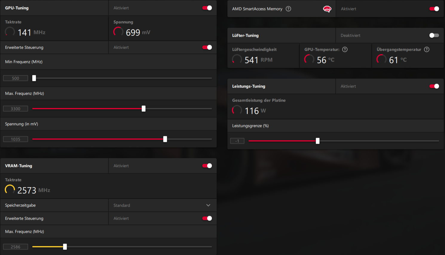 Bei mir ist nun eineMBA (Made by AMD) 7900 XTX ASUS TUF RX RX7900XTX im Rechner, bisher spiele ich noch viel mit den Werten.