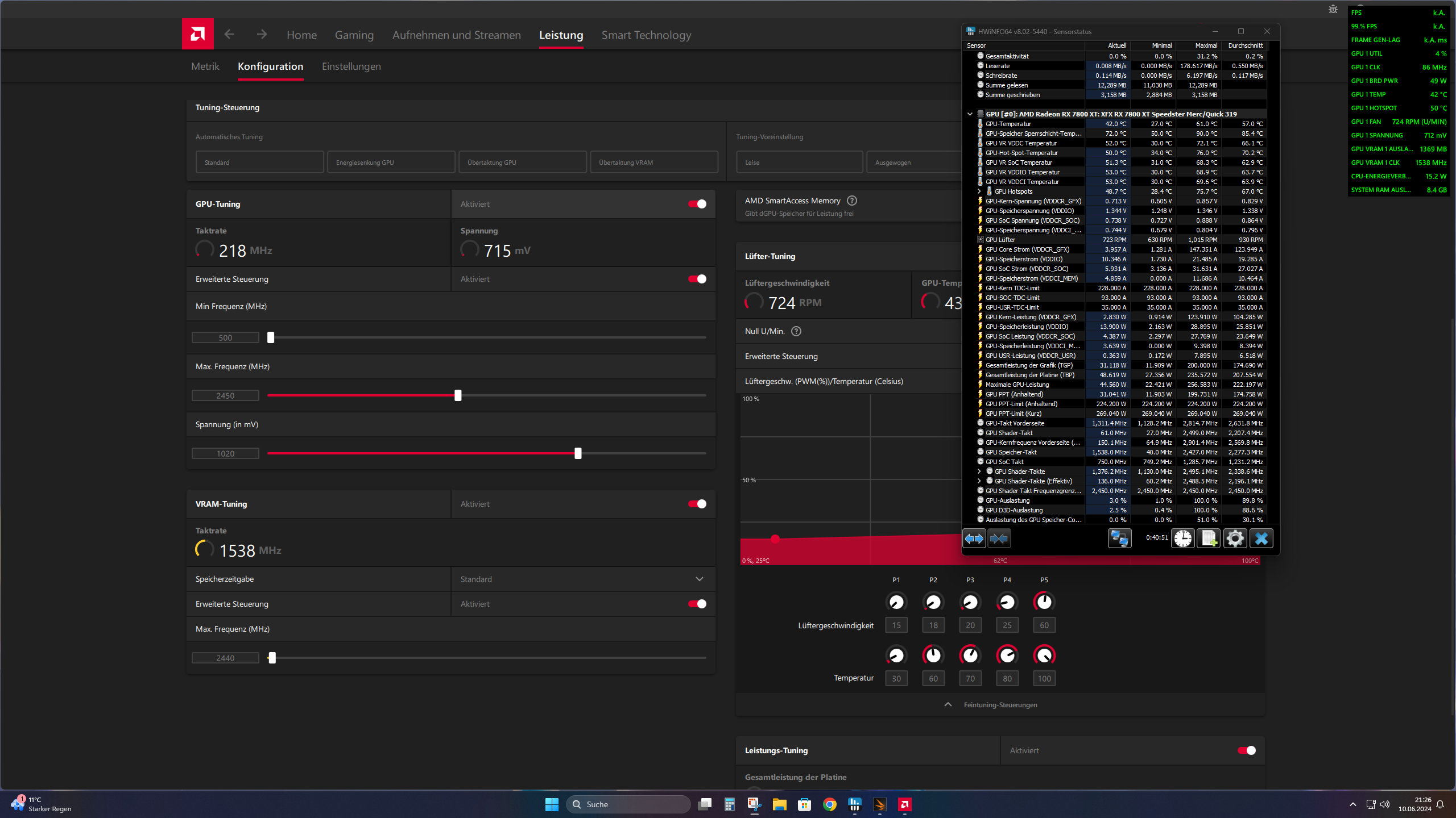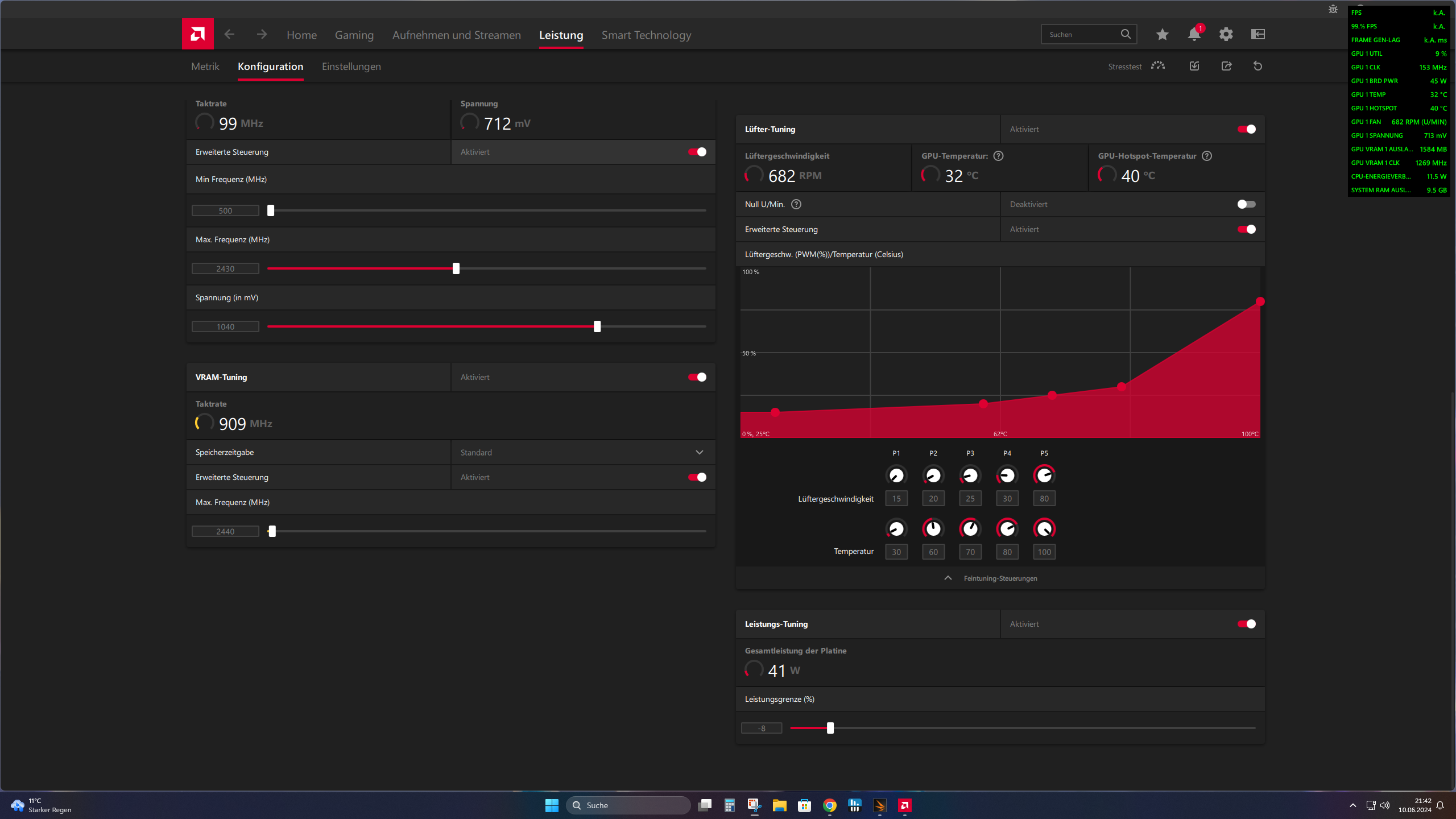 Bei mir - 7900XT - ist es auf 2500mhz eingeschränkt und geht nie über 85 Grad HS.
