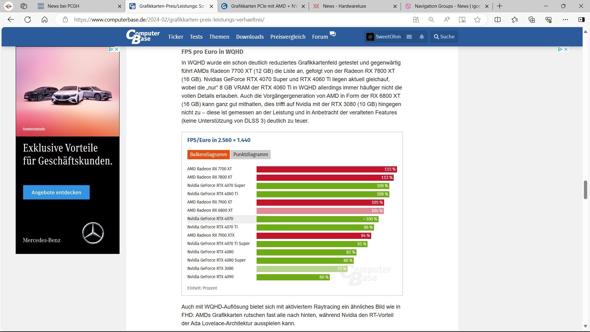Im RR (Raster) liegt die 7900XTX noch vor einer 4080 SUPER, ist dabei ca. 100 € günstiger bei 355 vs. 320 Watt.peDekaa schrieb:Eine 7900XTX ist auf dem Rasterlevel einer 4080 und kostet das selbe obwohl sie kein DLSS bietet und die Raytracing Leistung geringer ist. Dabei verbraucht sie auch mehr Watt und ist somit im Unterhalt teurer.