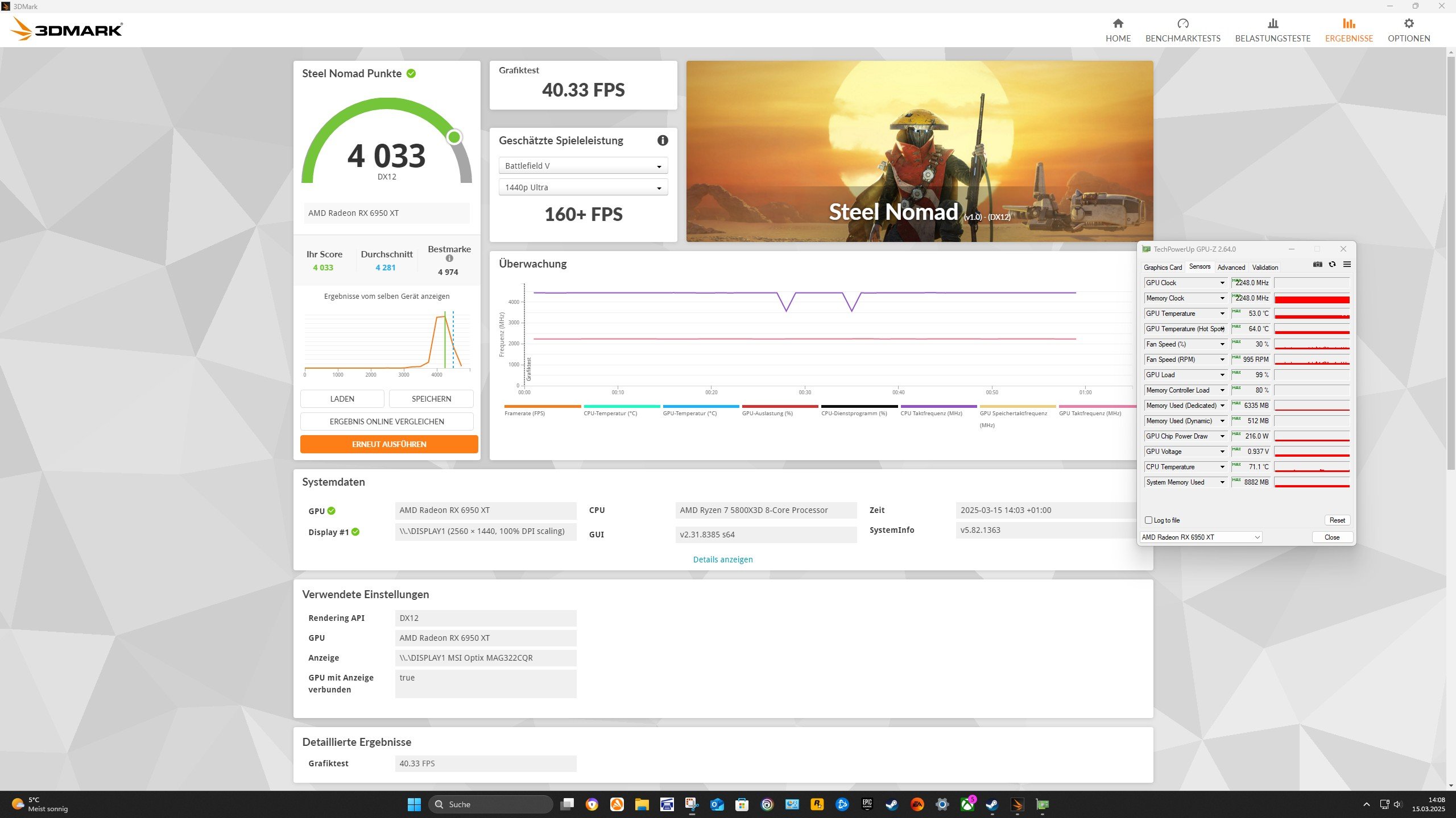 so habe mal bei meiner optimierten via MPT 6950xt geschaut zwecks Temps mit 3 Durchläufen Steel Nomad... Sehe gerade das GPUZ keine Memorytemps bei mir ausliest. Logge gleich noch eben mit HWINFO mit. Krass wieviel Punkte mehr die 9700XT liefert