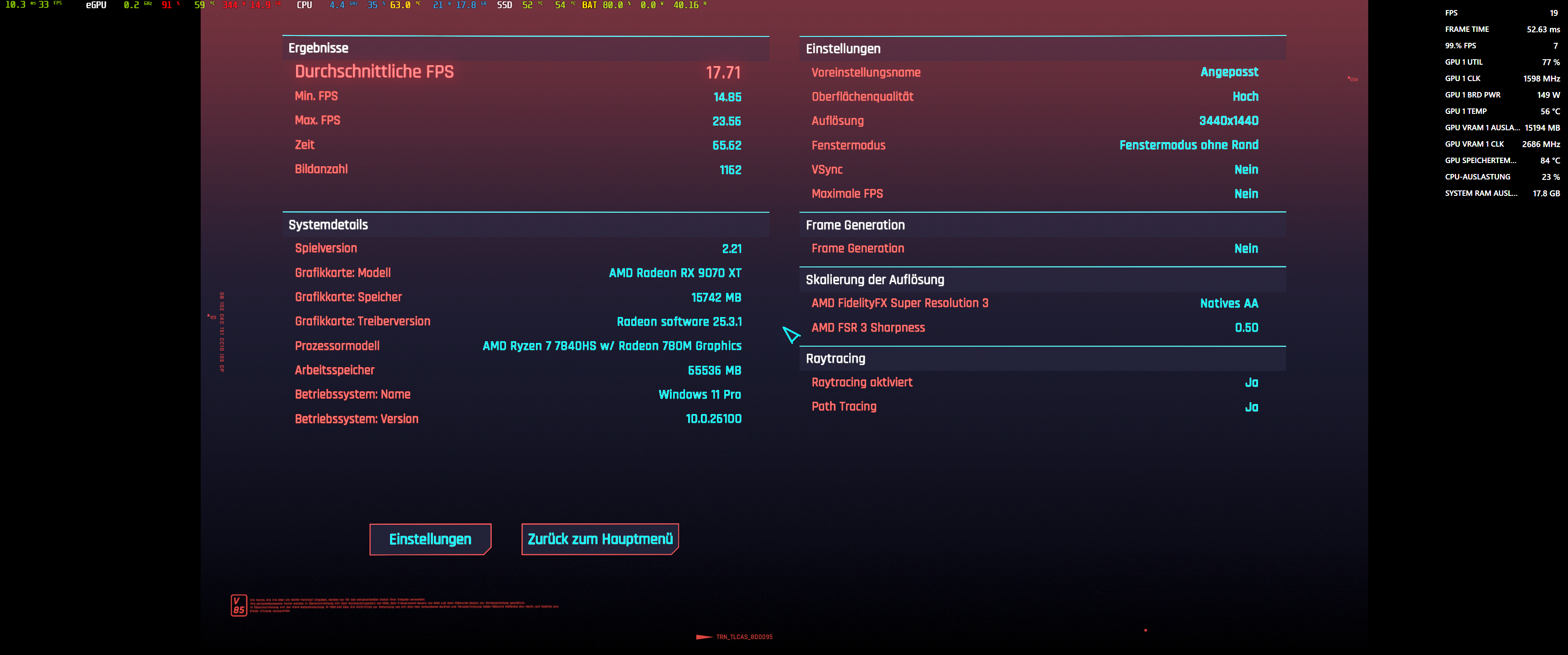 hier mal ein paar Ergebnisse von meiner Sapphire Nitro+ 9070 XT: