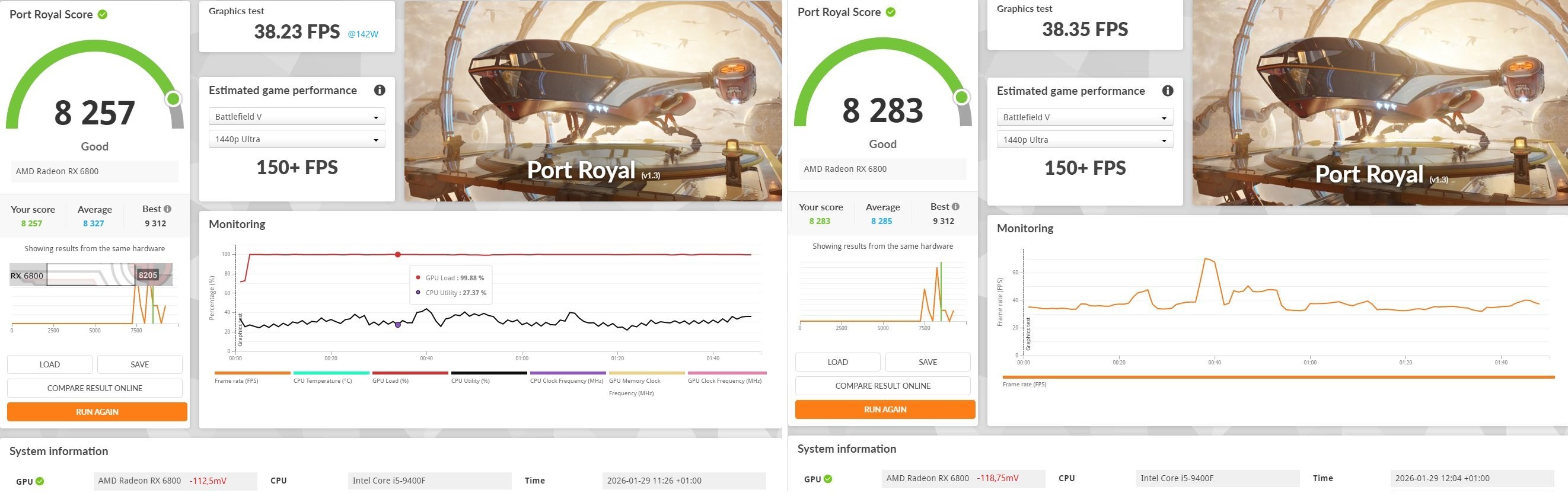 Ich werd den jetzt erstmal dauerhaft auf -150Mhz, -50mV, -15%/280W, 2664Mhz VRAM ihne FT laufen lassen. Ich denke das ist ein guter Kompromiss und ziemlich genau bei der Stellnomade das Stock Ergebnis für das OC Bios der Red Devil bei ca 7250 Punkten mit 330W.