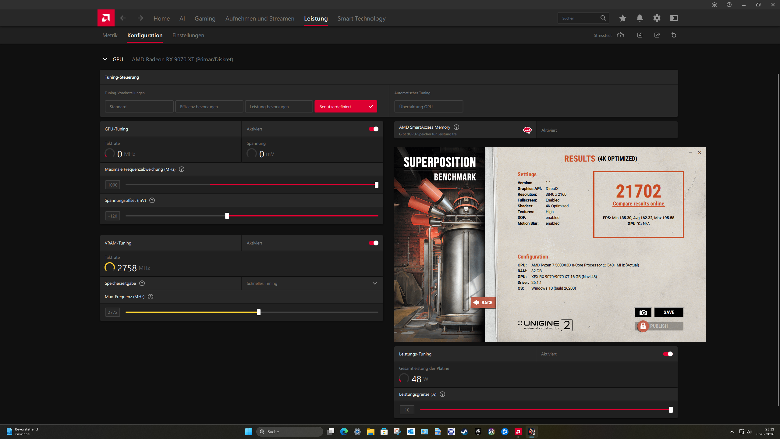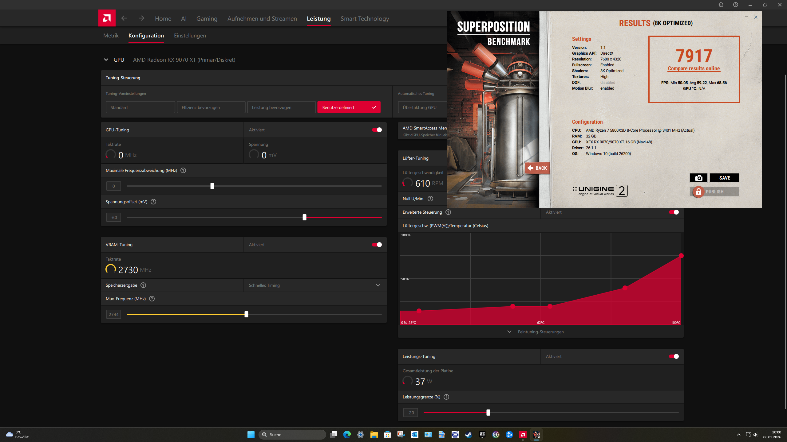 Meine 7900XT hat unter selben Bedingungen damals etwas über 22100 Punkte gemacht. Gut meine 9070XT geht auch nicht ganz so gut, hätte da aber etwas mehr erwartet.